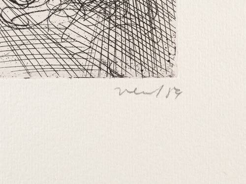 1988. Farbradierung / Strichätzung & Vernis mou, in Braun & Schwarz, auf hellchamois Weißenborn. – Originale Künstlergrafik, von Hans Vent. – Auflage Exemplar Nr. 88/200. – 19,8 x 19,5 cm (Darstellung / Platte), 36 x 36 cm (Blatt).