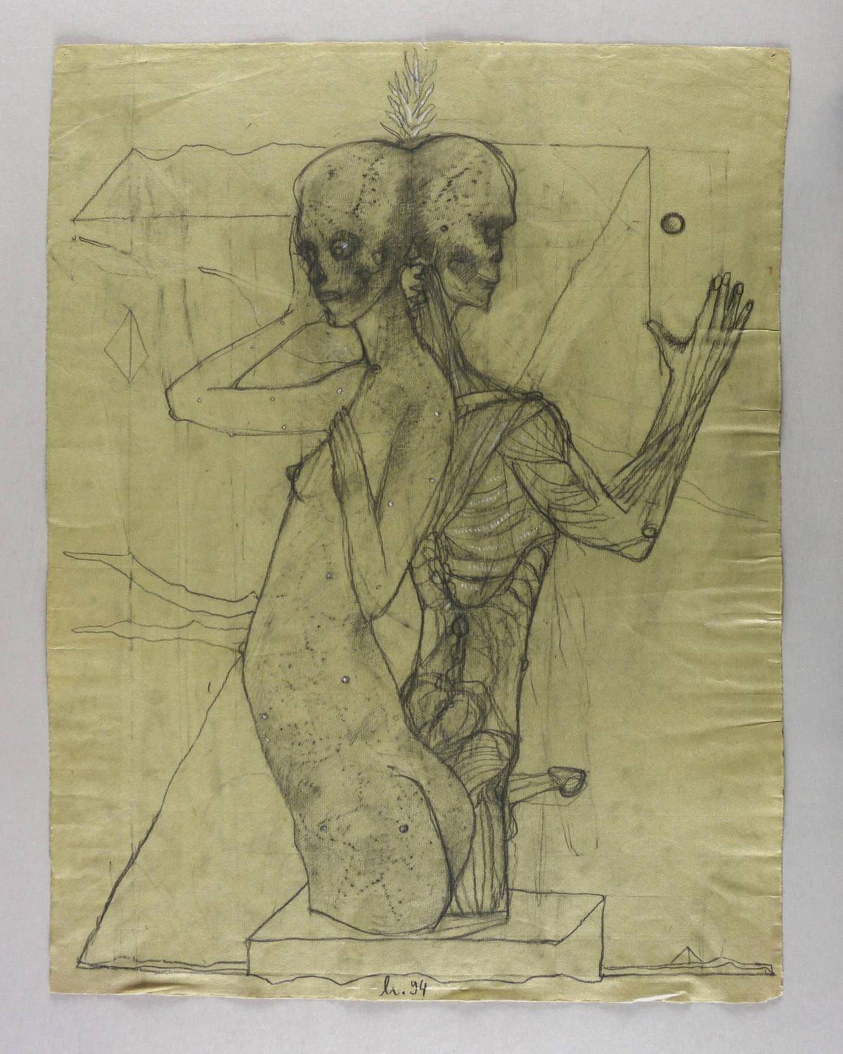 1994. Zeichnung / Graphitzeichnung, partiell gewischt, auf graugrün getöntem Hahnemühle. – Originale Künstlergrafik, von Holger Hermann. – Unikat. – 62,3 x 47,9 cm (Darstellung / Blatt).