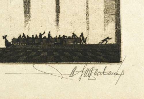 Rechts unten in Bleistift signiert: ″W. Helfenbein″. In der Platte Inschrift: ″EXLIBRIS ERICH DORSCHFELDT″. – Tadellos. Sehr guter Zustand.
