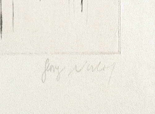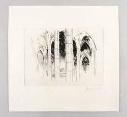 1950-1960. Radierung / Kaltnadel, in Schwarz, auf weichem gelbem Velin. – Originale Künstlergrafik, von Georg Nerlich. – 22,4 x 30,8 cm (Darstellung / Platte), 42 x 43 cm (Blatt).