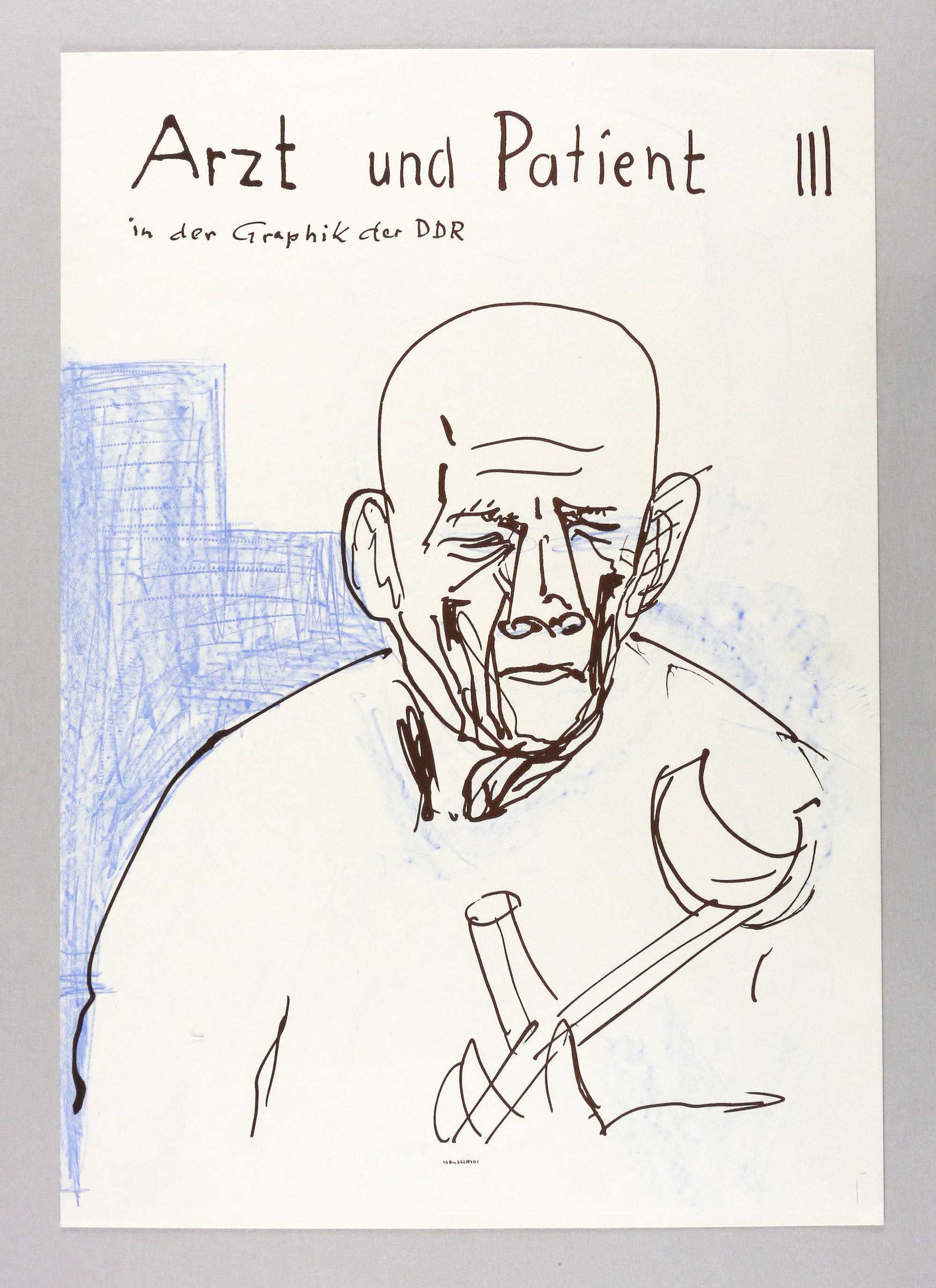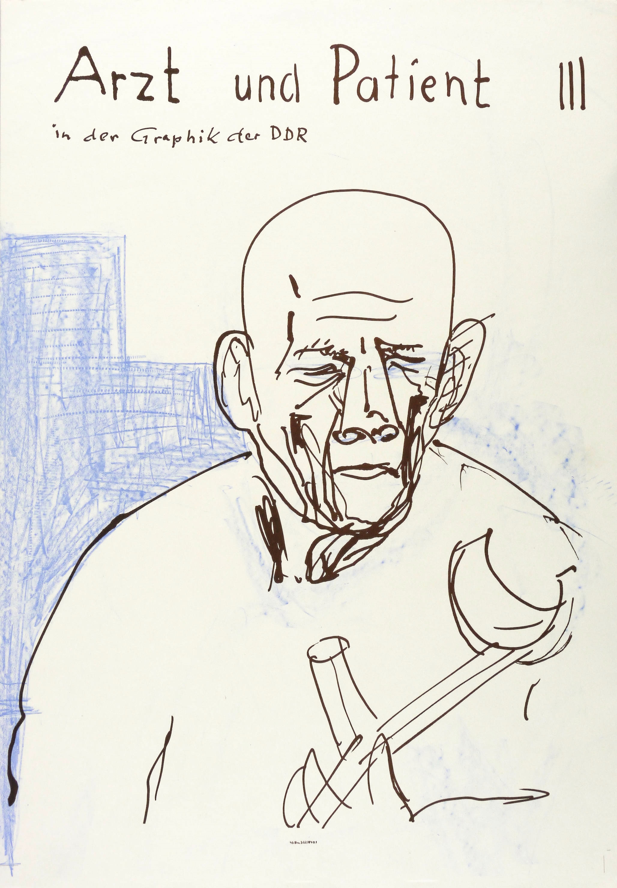 Schieferdecker-Haßler-Schobbert IV 14. – Nicht signiert. Im Druck oben Inschrift bzw. Plakattext. – Originalgrafisches Plakat zur Ausstellung ″Arzt und Patient III″ in der Charité Berlin 1987. - Provenienz: Sammlung Dr. Ingrid und Prof. Dr. Albrecht Scholz, Dresden. – Tadelloses Exemplar. Sehr guter Zustand.