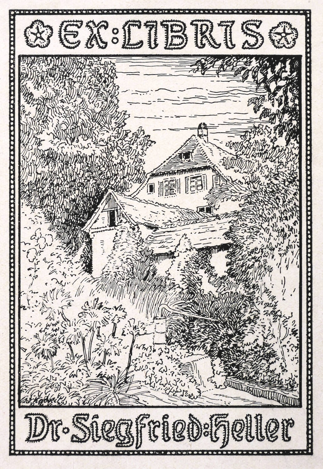 Im Druckstock links unten schwer lesbar signiert, etwa: ″Erd. Kobbelt (?)″. Im oberenund unteren rand der Darstellung Inschrift: ″EX LIBRIS DR. SIEGFRIED HELLER″. – Guter Zustand.