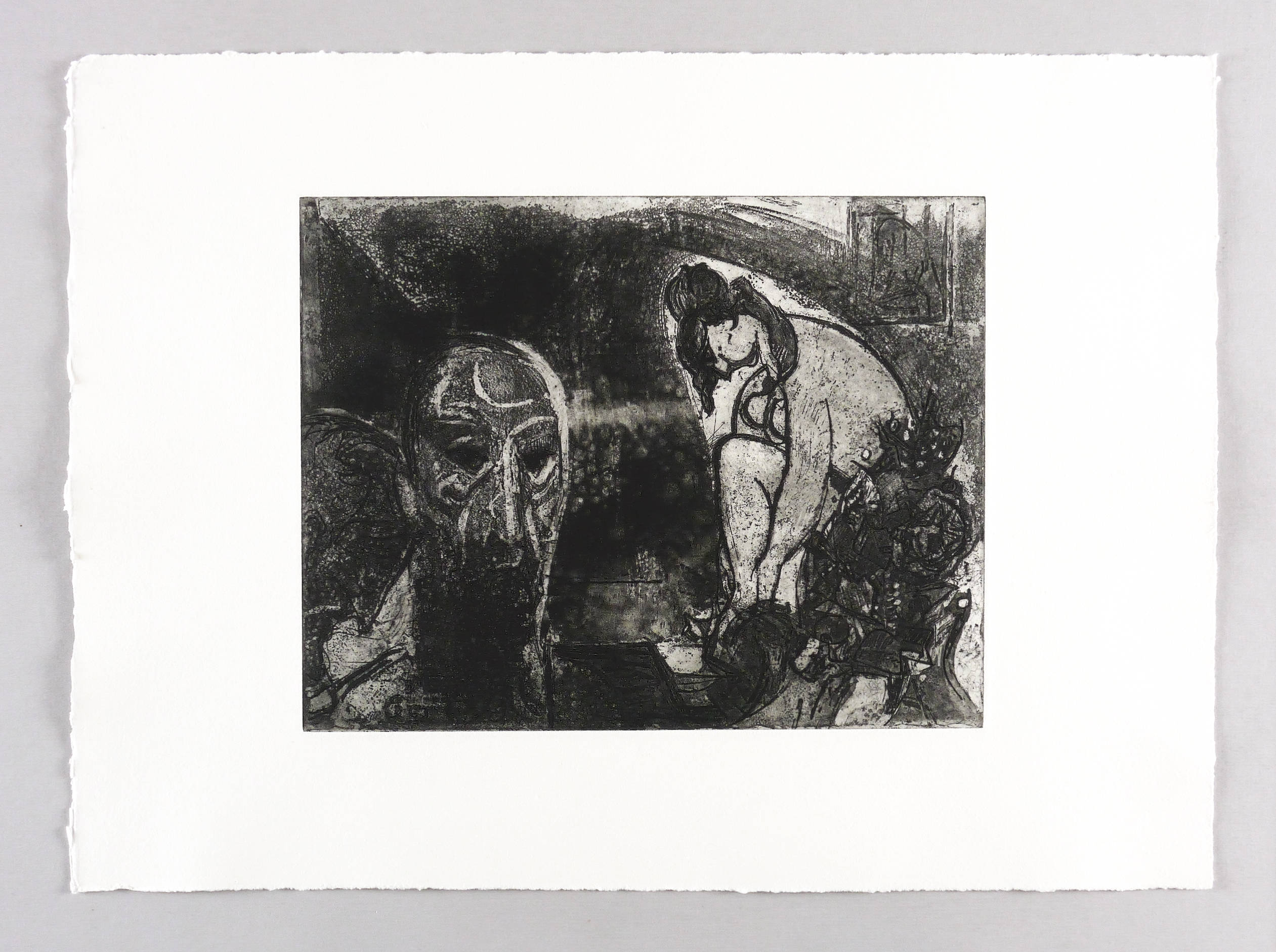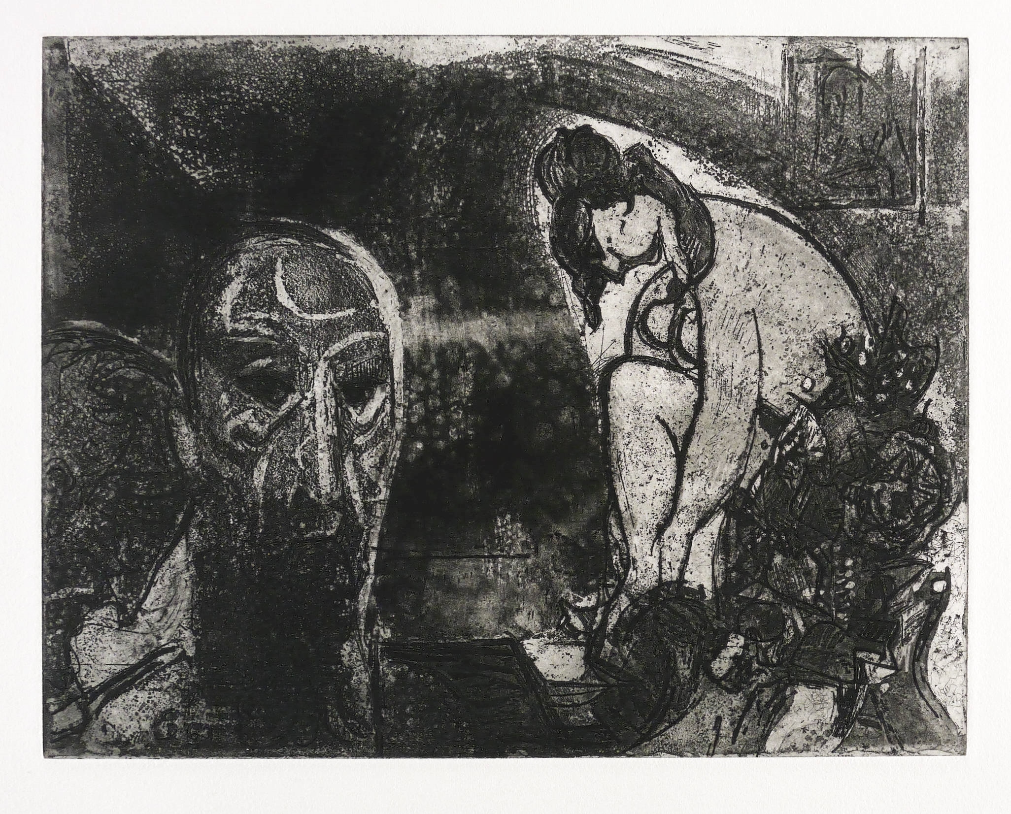 Um 1950. Radierung / Aquatinta, in Schwarz, auf schwerem Hahnemühle-Bütten. – Originale Künstlergrafik, von Wilhelm Lachnit. – Auflage Exemplar Nr. 4/40. – 25,1 x 32,0 cm (Darstellung / Platte), 39 x 54 cm (Blatt).