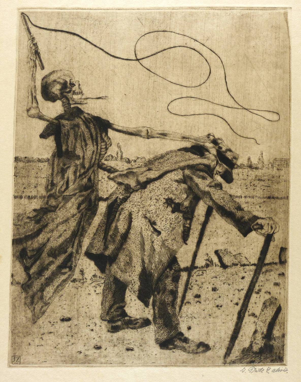 1914. Radierung / Vernis mou, Strichätzung & Kaltnadel, in Schwarz, auf gelbem kaiserlich Japan. – Originale Künstlergrafik, von Fritz Zalisz. – 62 x 45 cm (Blatt), 43,7 x 33,9 cm (Darstellung / Platte).