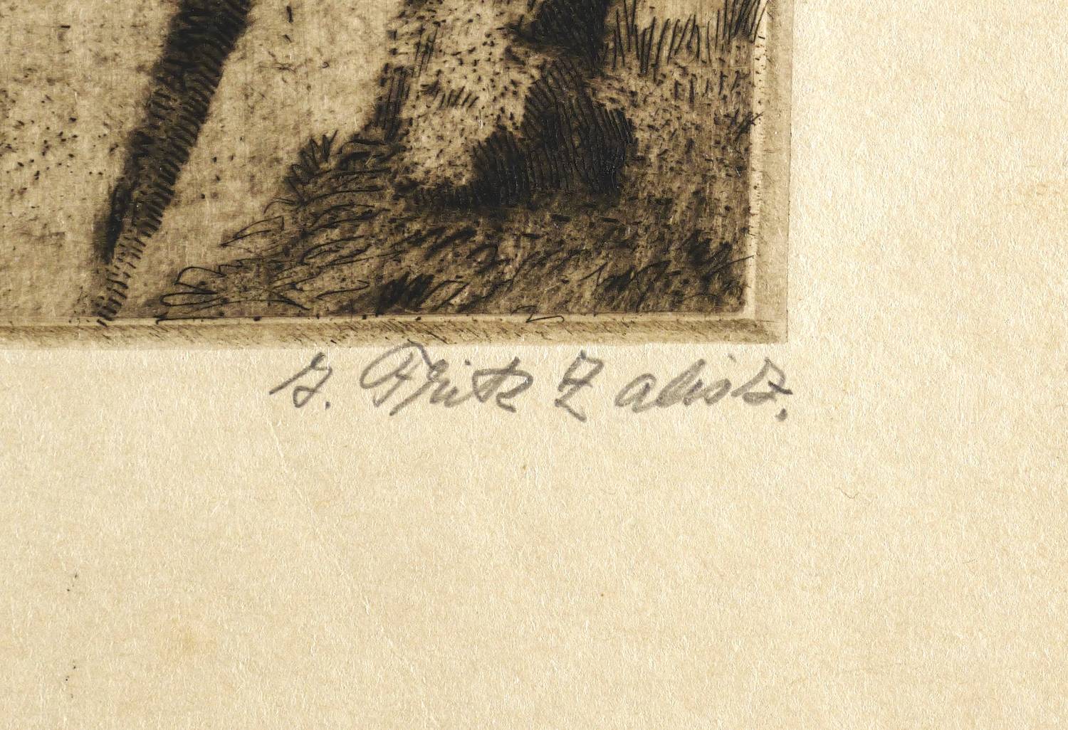 Rechts unten in Bleistift signiert ″J. Fritz Zalisz″. In der Platte links unten im Wappenschild Monogramm und Jahr: ″FZ 14″. – Ohne jeden Mangel. Schönes unbeschnittenes Exemplar. Sehr guter Zustand.