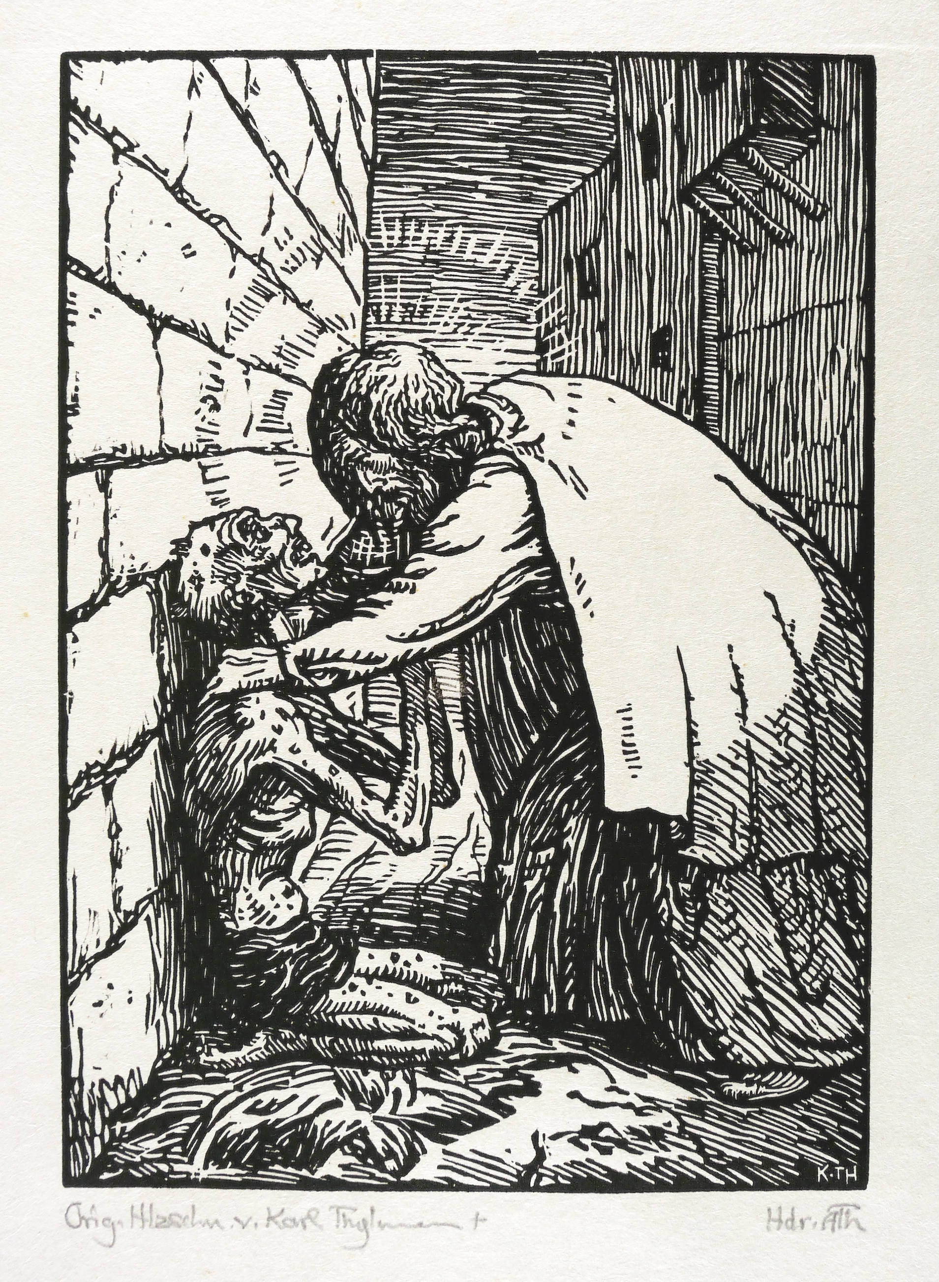 Rechts unten in Bleistift bezeichnet: ″Hdr. KTh″. Links weiter: ″Orig. Hlzschn. v. Karl Thylmann″. In der Blattecke links unten Auflagenbezeichnung. – Nachlassdruck von dem originalen Druckstock. – Sehr guter Zustand.