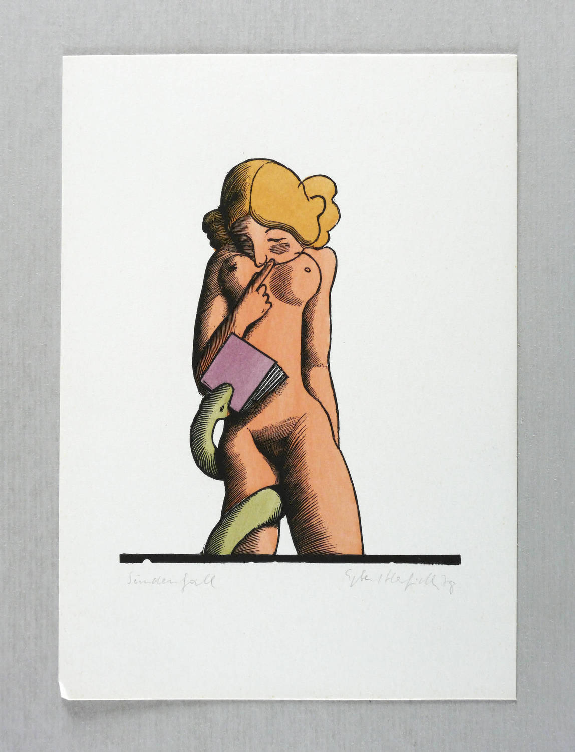 1978. Farbholzschnitt, in 4 Farben, auf hellem Karton. – Originale Künstlergrafik, von Egbert Herfurth. – 12,5 x 10,5 cm (Darstellung / Druckbild), 20 x 14 cm (Blatt).