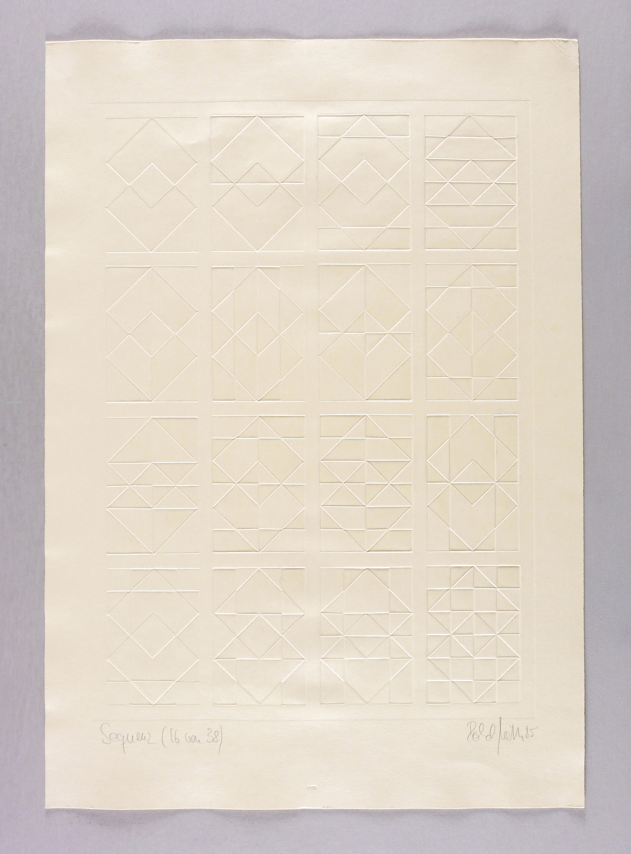 Aus: Graphische Etüden. Grafik-Edition XIII (Leipzig: Reclam 1982). – Rechts unten in Bleistift signiert und datiert: ″Roland Meinel 85″. Links Titel: ″Sequenz (16 von 38)″. Mittig darunter Trockenstempel des Künstlers. Verso Stempel der Plauener Grafikgemeinschaft. – Sehr guter Zustand.