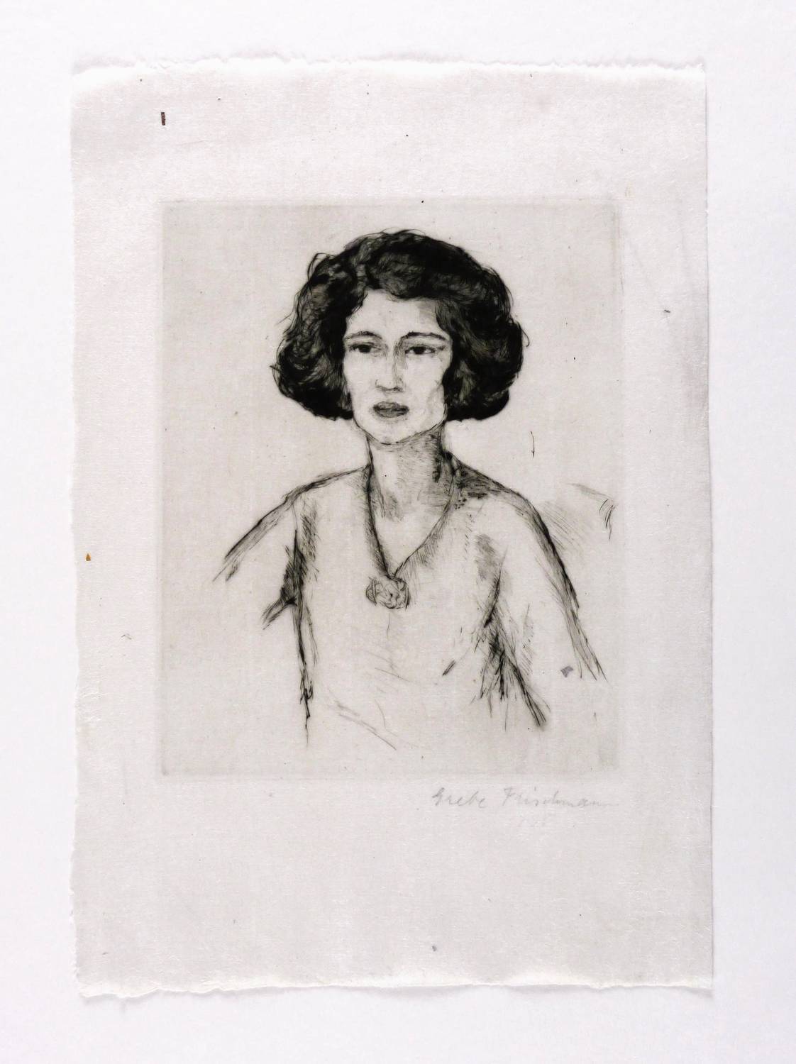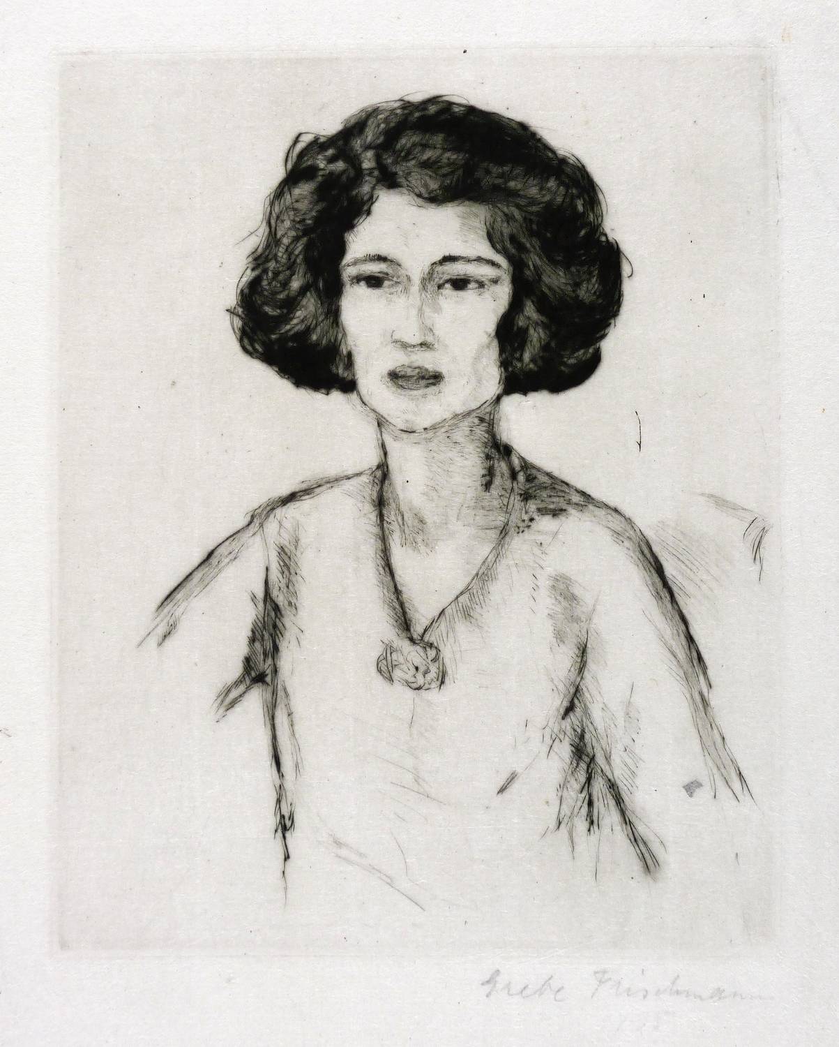 Um 1930. Radierung / Kaltnadel, in Schwarz, auf feinstem weißlichem Japanbütten. – Originale Künstlergrafik, von Grete Fleischmann. – 31 x 22 cm (Blatt), 19,4 x 15,2 cm (Darstellung / Platte).