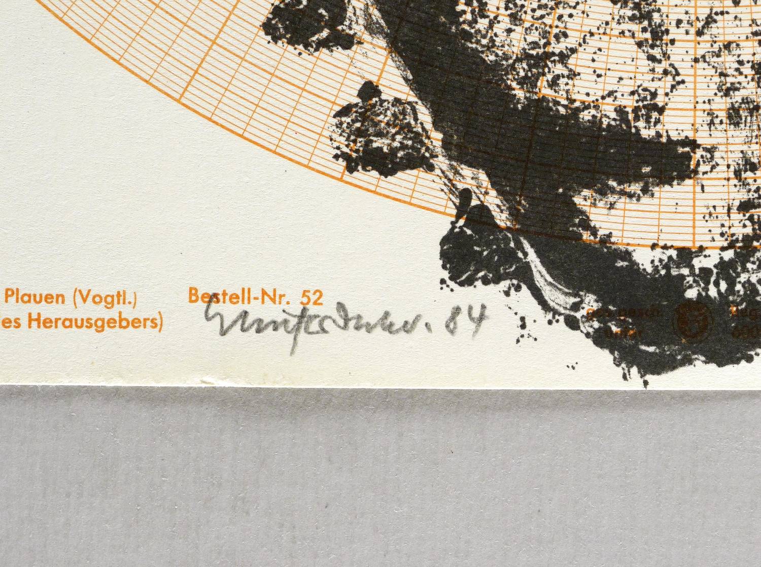 Schieferdecker-Haßler-Schobbert III 75 a (von b). – Im unteren Blattrand in Bleistift signiert und datiert: ″Schieferdecker 84″. In der Blattecke links unten Widmung an den Steindrucker Michael Wackwitz. – Tadelloses Exemplar. Sehr guter Zustand.