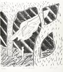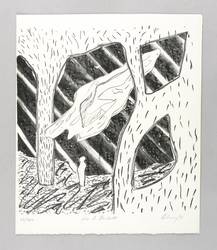 1981. Lithografie / Kreidelithografie, in Schwarz, auf festem hellchamois Velin. – Originale Künstlergrafik, von Helge Leiberg. – Auflage Exemplar Nr. 64/100. – 41 x 35 cm (Blatt), 34,9 x 33,7 cm (Darstellung / Druckbild).