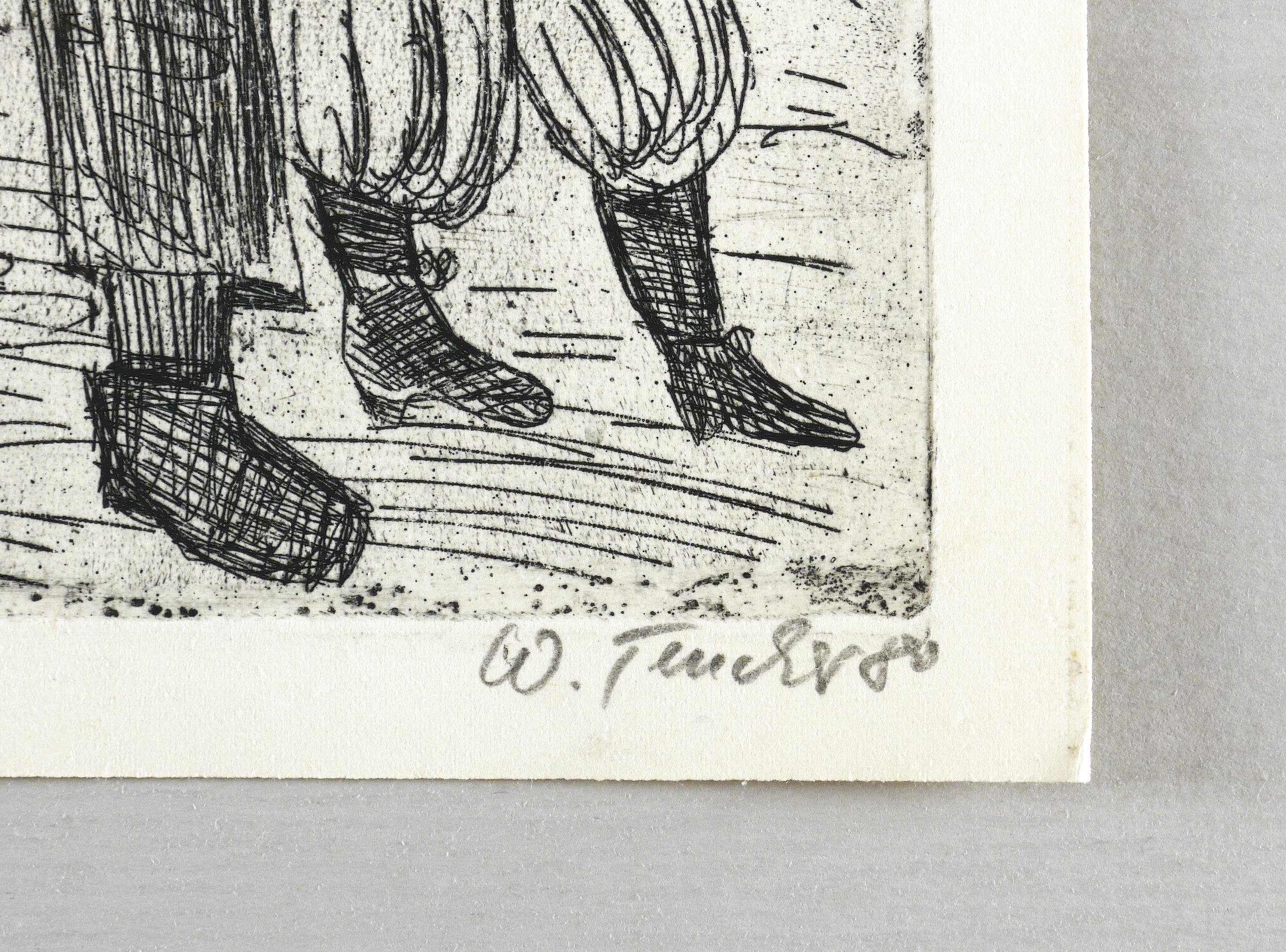 1980. Radierung / Strichätzung, in Schwarz, auf hartem hellchamois Velin. – Originale Künstlergrafik, von Wolfgang Teucher. – 16,1 x 13,7 cm (Darstellung / Platte), 18 x 16 cm (Blatt).