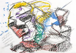 1984. Lithografie / Kreidelithografie, in Farbkreide & Bleistift koloriert, auf weißem Karton. – Originale Künstlergrafik, von Horst Weber. – Auflage Exemplar Nr. 4/30 (Unikat). – 15,5 x 21,8 cm (Darstellung / Blatt).