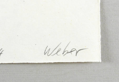 Verso in Bleistift signiert und datiert: ″30.12.84 Weber″. Dazu Auflagenbezeichnung und Titel. – Unikate farbige Überarbeitung einer Kreidelithografie. – Vollrandiges Exemplar. Sehr guter Zustand.