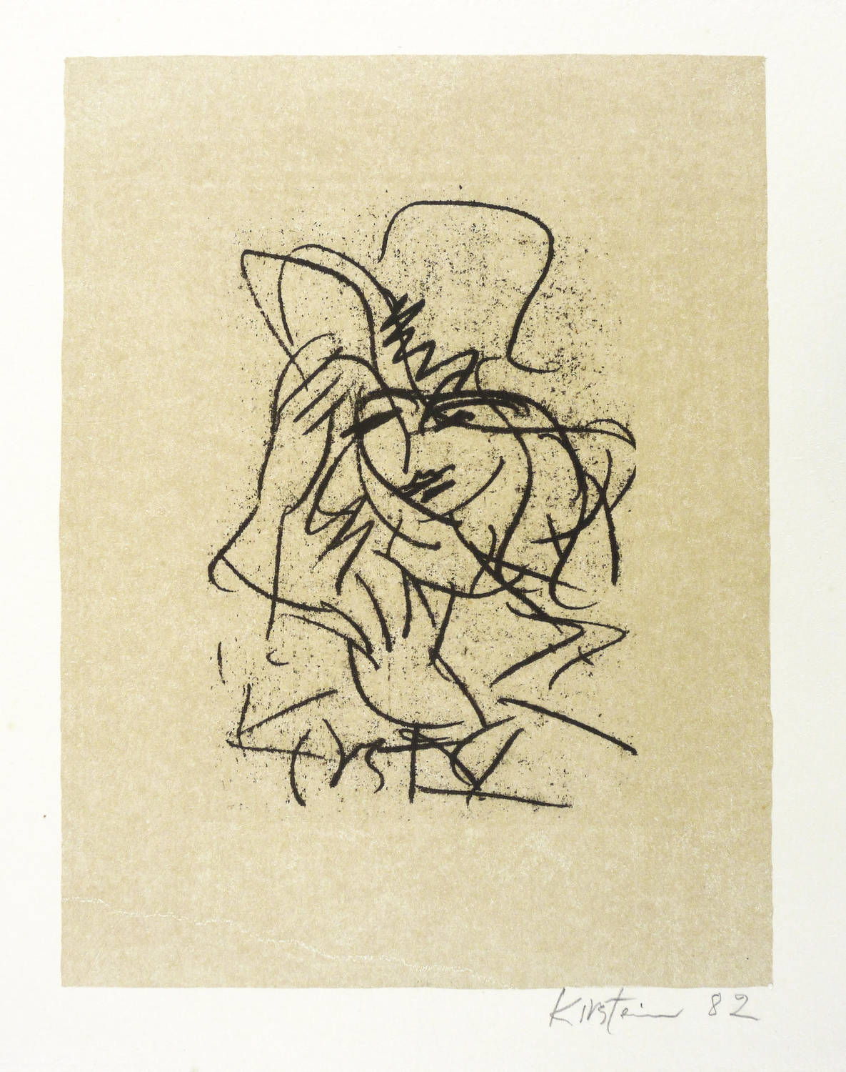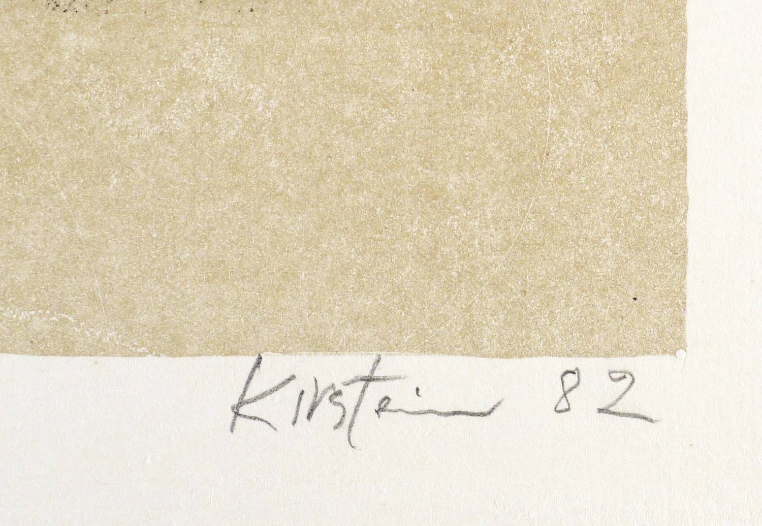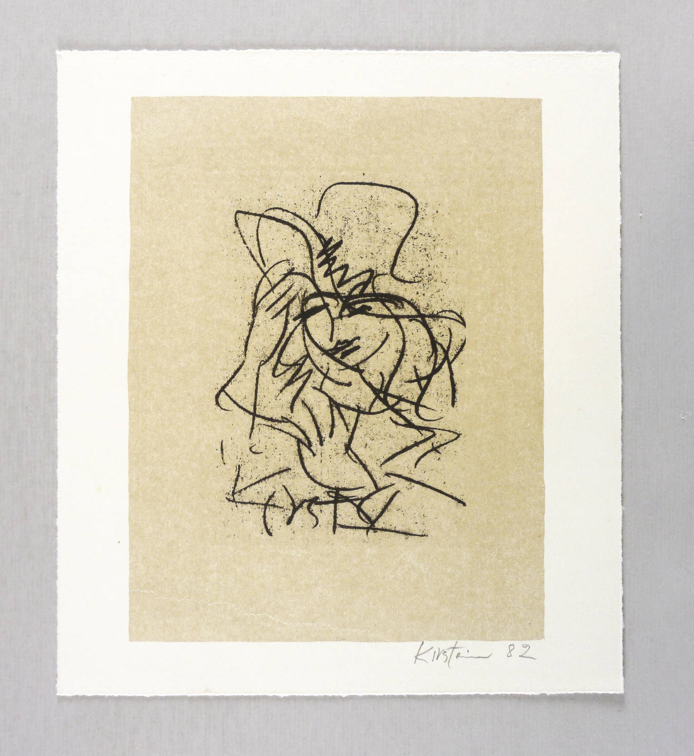Rechts unten in Bleistift signiert und datiert: ″Kirstein 82″. – Kleine Lithografie, die im Zusammenhang der Mappe ″Mädchen″ entstanden sein muss, hier aber als Einzelblatt und als Tonlithografie gedruckt. – Sehr guter Zustand.
