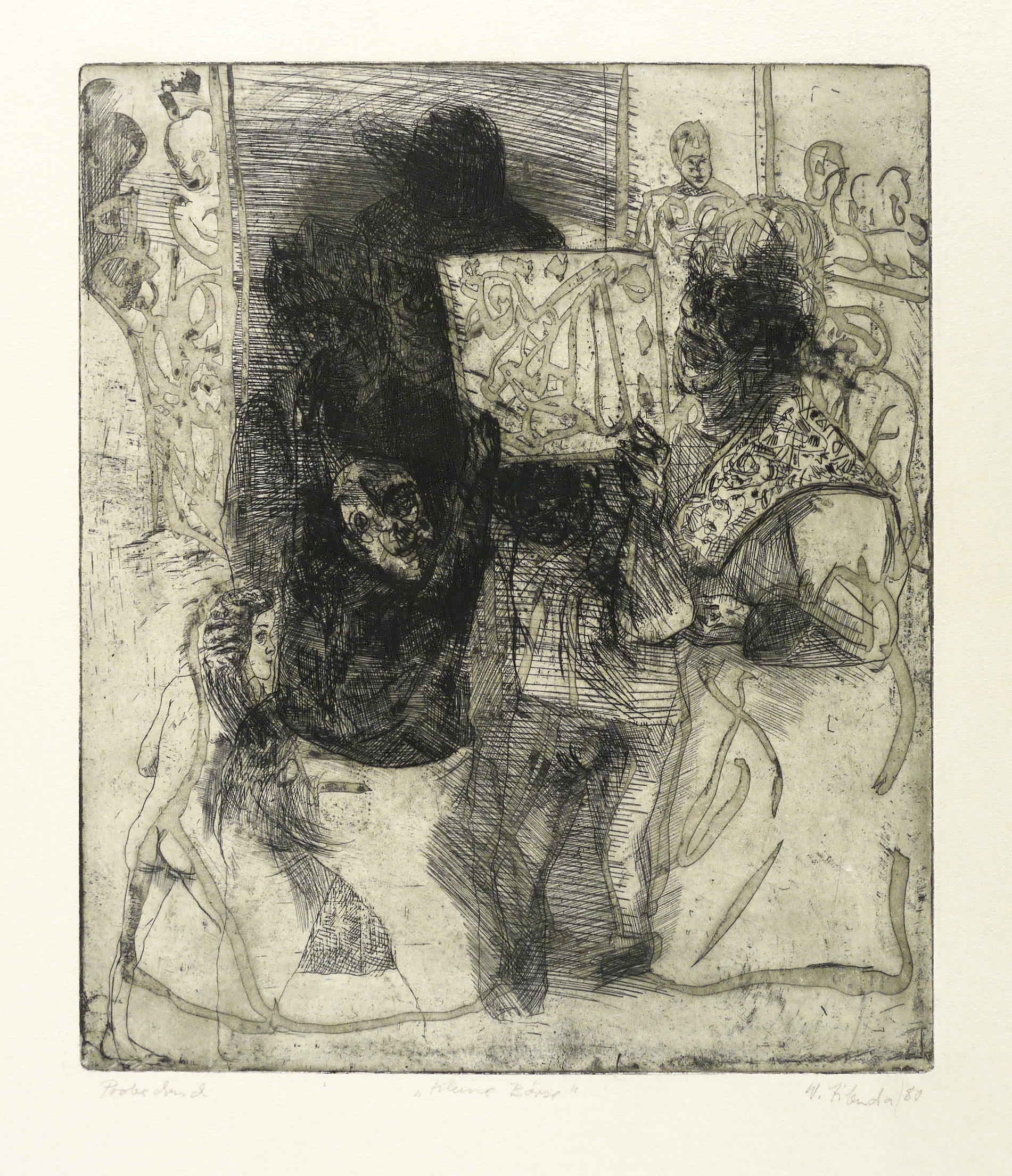 1980. Radierung / Strichätzung & Aquatinta, in Schwarz, auf chamois Velinkarton. – Originale Künstlergrafik, von Walter Libuda. – Probedruck. – 27,3 x 23,1 cm (Darstellung / Platte), 43 x 35 cm (Blatt).