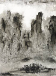 Um 1980. Zeichnung / Pinselzeichnung, in schwarzer Tusche, auf leichtem weißlichem Velin. – Originale Künstlergrafik, von Elly Schreiter. – Unikat. – 43,2 x 32,4 cm (Darstellung / Blatt).