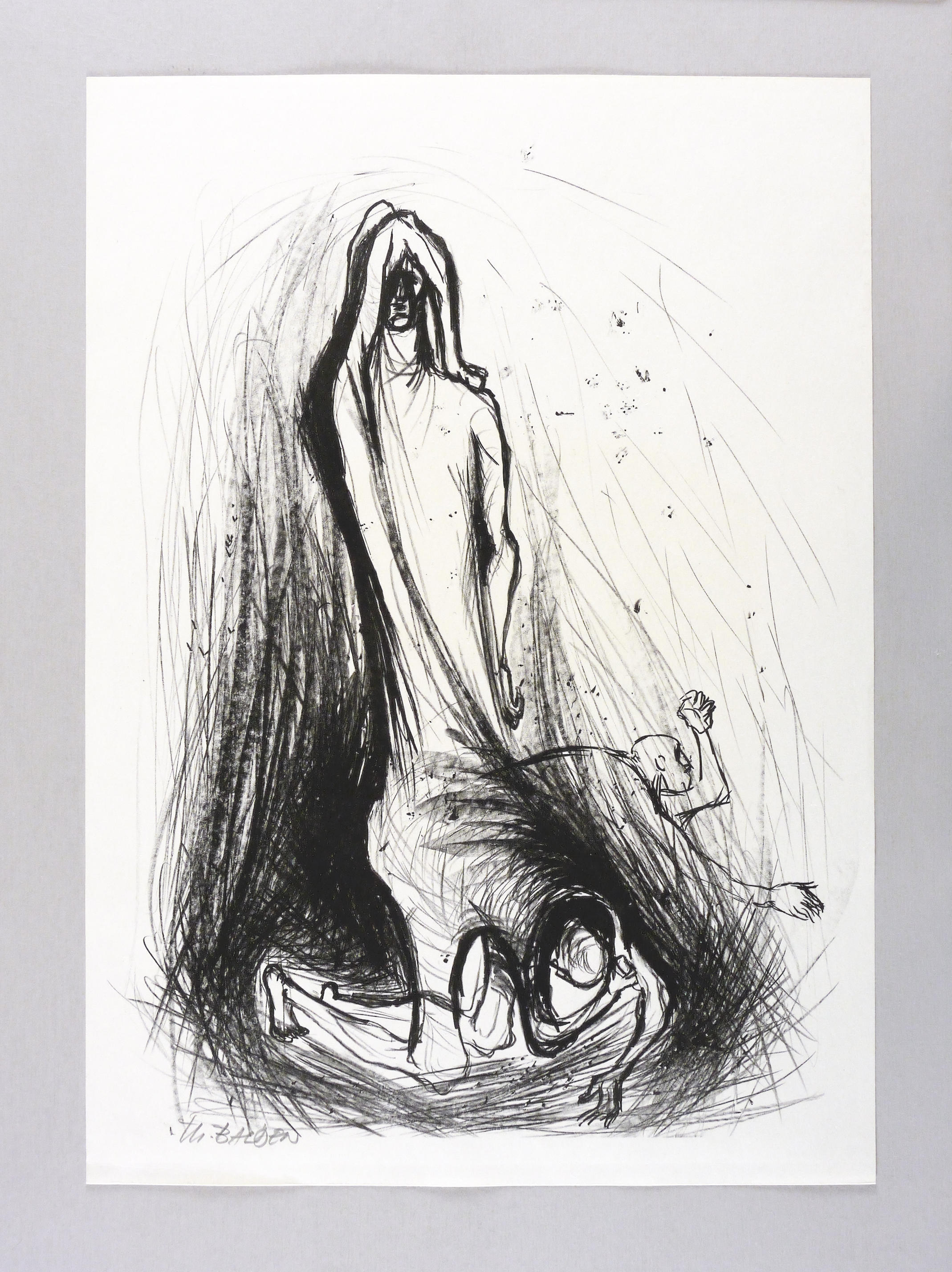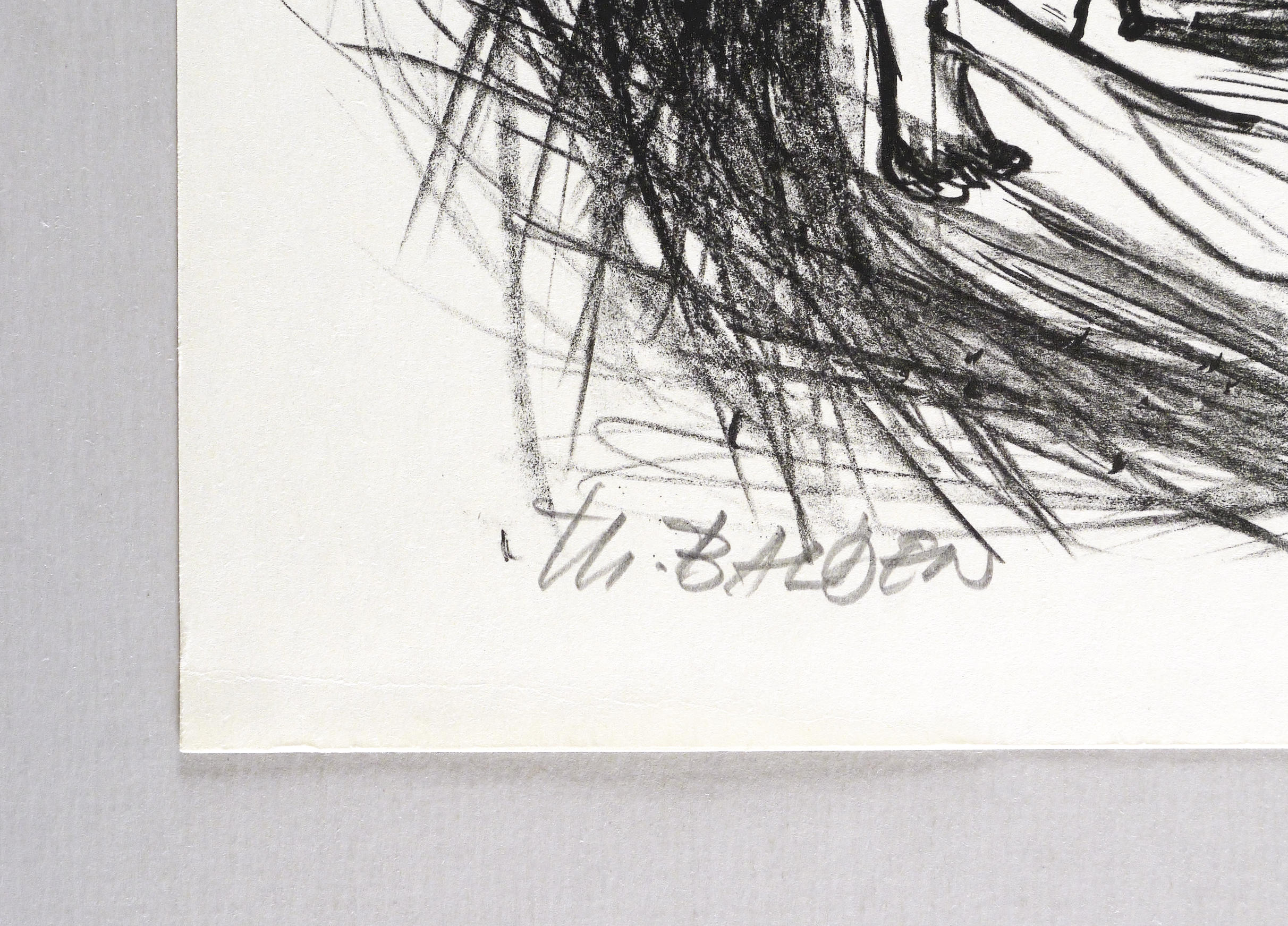1972/1973. Lithografie / Kreidelithografie, in Schwarz, auf leichtem hellchamois Velin. – Originale Künstlergrafik, von Theo Balden. – Auflage Exemplar Nr. 62/100. – 43,5 x 33,5 cm (Darstellung / Druckbild), 49 x 35 cm (Blatt).