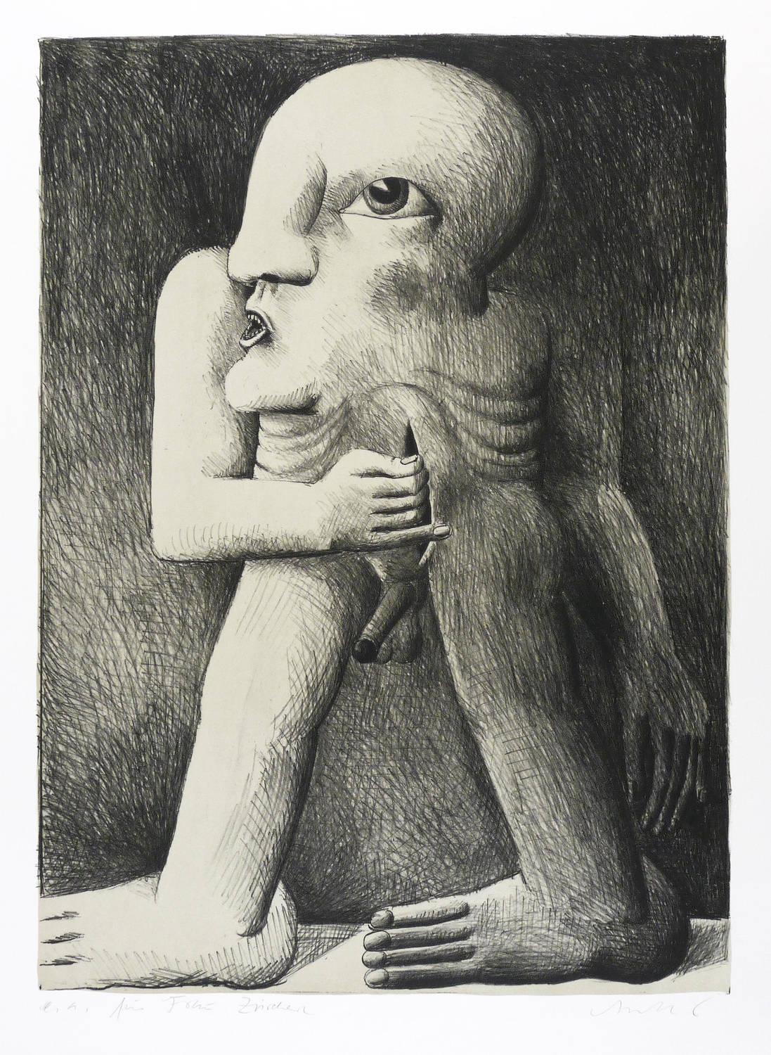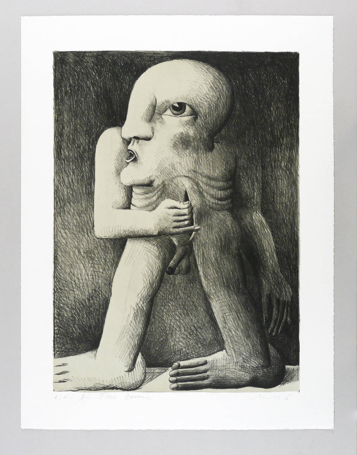 1970. Farblithografie / Kreide- & Pinsellithografie, in 2 Farben, auf rauem hellchamois BFK Rives. – Originale Künstlergrafik, von Horst Antes. – Künstlerexemplar (e.a.). – 62,7 x 45,4 cm (Darstellung / Druckbild), 76 x 58 cm (Blatt).