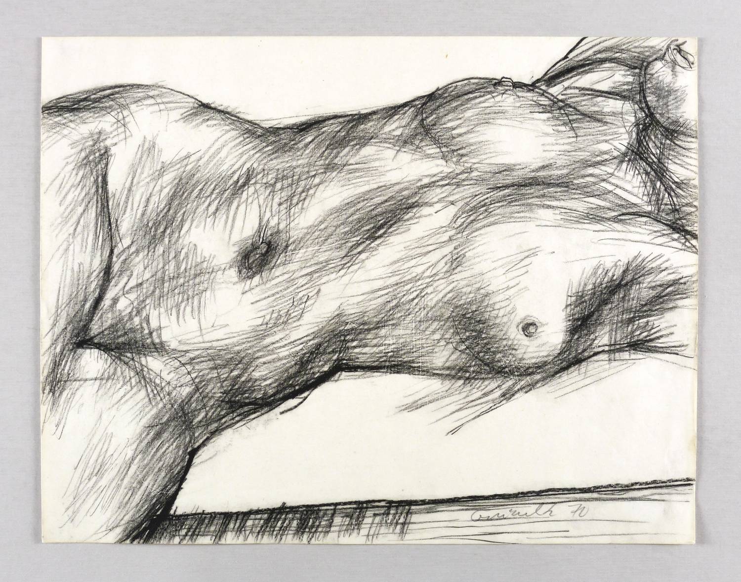 1970. Zeichnung / Kreidezeichnung, in Schwarz, auf hellgelbem Velin. – Originale Künstlergrafik, von Waldemar Grzimek. – Unikat. – 30,0 x 38,6 cm (Darstellung / Blatt).