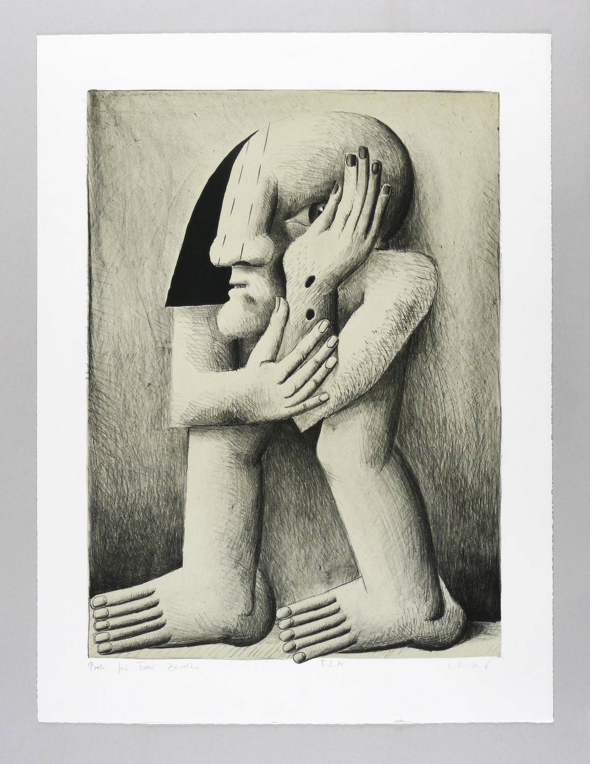 1970. Farblithografie / Kreide- & Pinsellithografie, in 2 Farben, auf rauem hellchamois BFK Rives. – Originale Künstlergrafik, von Horst Antes. – Probedruck. – 61,8 x 45,4 cm (Darstellung / Druckbild), 75 x 57 cm (Blatt).