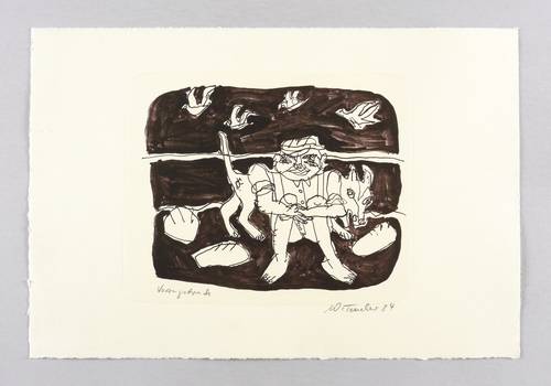 1984. Lithografie / Feder- & Pinsellithografie, in Schwarzbraun, auf weichem chamois Velin. – Originale Künstlergrafik, von Wolfgang Teucher. – Vorzugsdruck. – 19,0 x 24,1 cm (Darstellung / Druckbild), 31 x 45 cm (Blatt).