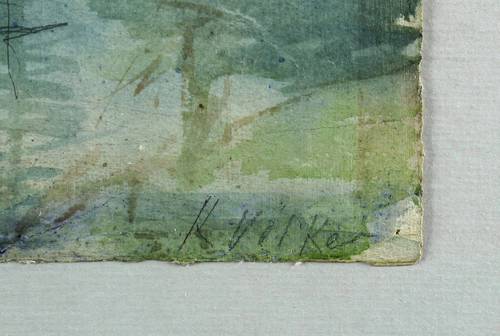 Rechts unten in Bleistift signiert: ″K. Völker″. – In den Blattecken originale Reißzwecklöchlein. Blattränder oberflächlich partiell beansprucht. Karton rückseitig etwas fleckig und mit leichten Montagespuren, die Bildseite davon unbeeindruckt. Guter bis sehr guter Zustand.
