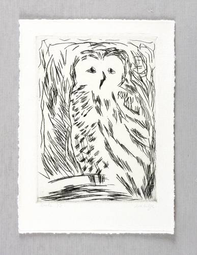 Rechts unten signiert: ″Ma. Lilge″. Links Titel und Jahr: ″Eule 79″. – Sehr guter Zustand.