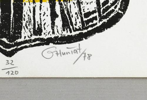 Rechts unten in Bleistift signiert und datiert: ″GHuniat / 78″. Links Titel: ″Im Wappen″. Mittig Auflagenbezeichnung: ″32/120″. – Linke obere Blattecke unscheinbar bestoßen. Guter Zustand.