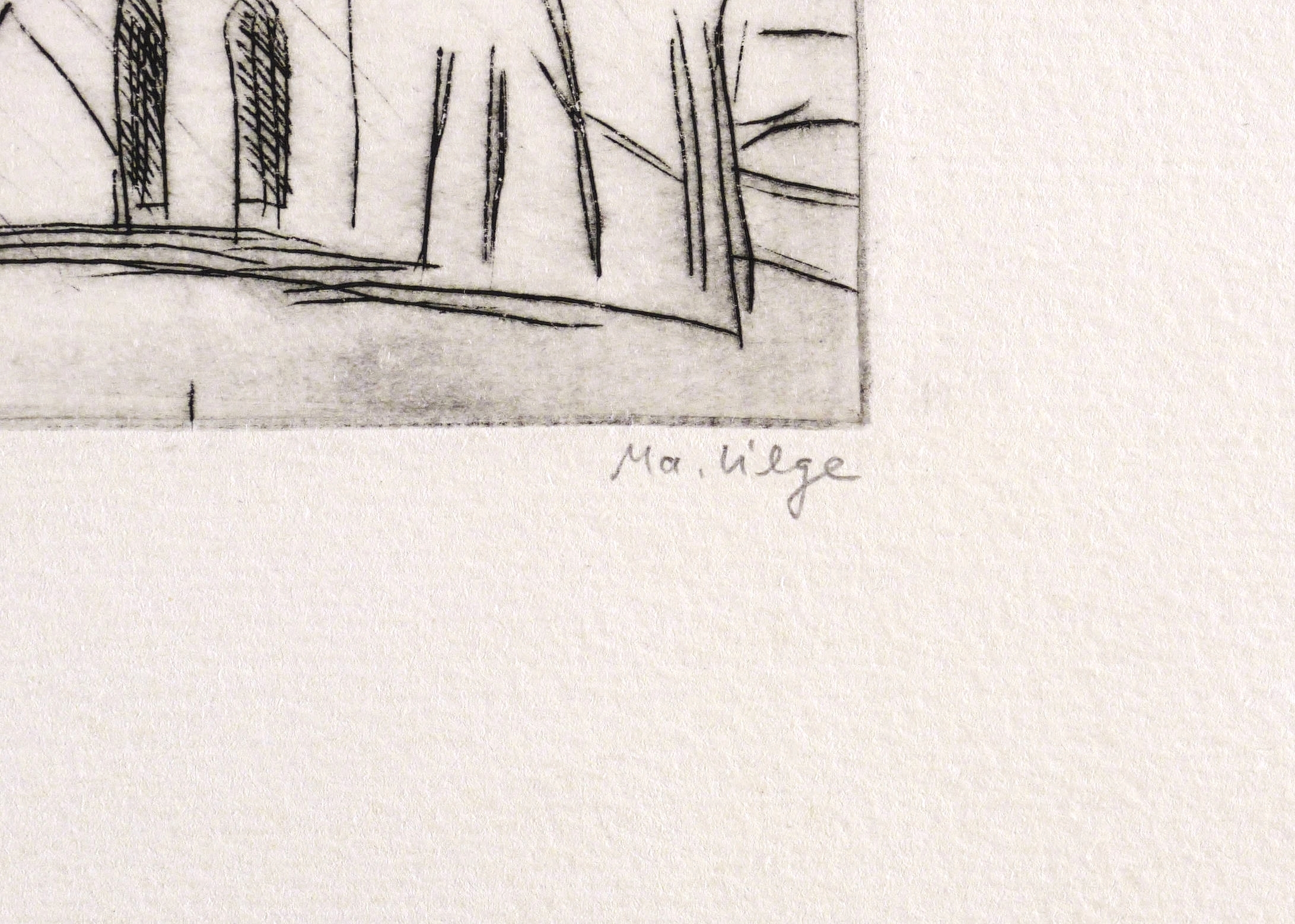 1979. Radierung / Strichätzung, in Schwarz, auf hellchamois Velinkarton. – Originale Künstlergrafik, von Marlis Lilge. – 10,3 x 12,7 cm (Darstellung / Platte), 33 x 23 cm (Blatt).