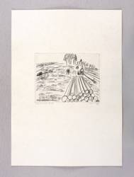 1979. Radierung / Strichätzung, in Schwarz, auf hellchamois Velinkarton. – Originale Künstlergrafik, von Marlis Lilge. – 10,5 x 13,5 cm (Darstellung / Platte), 33 x 23 cm (Blatt).