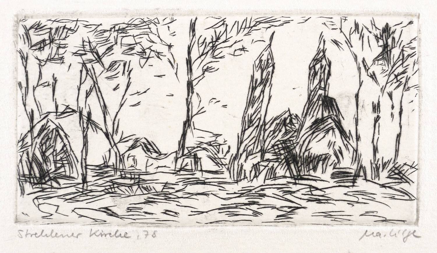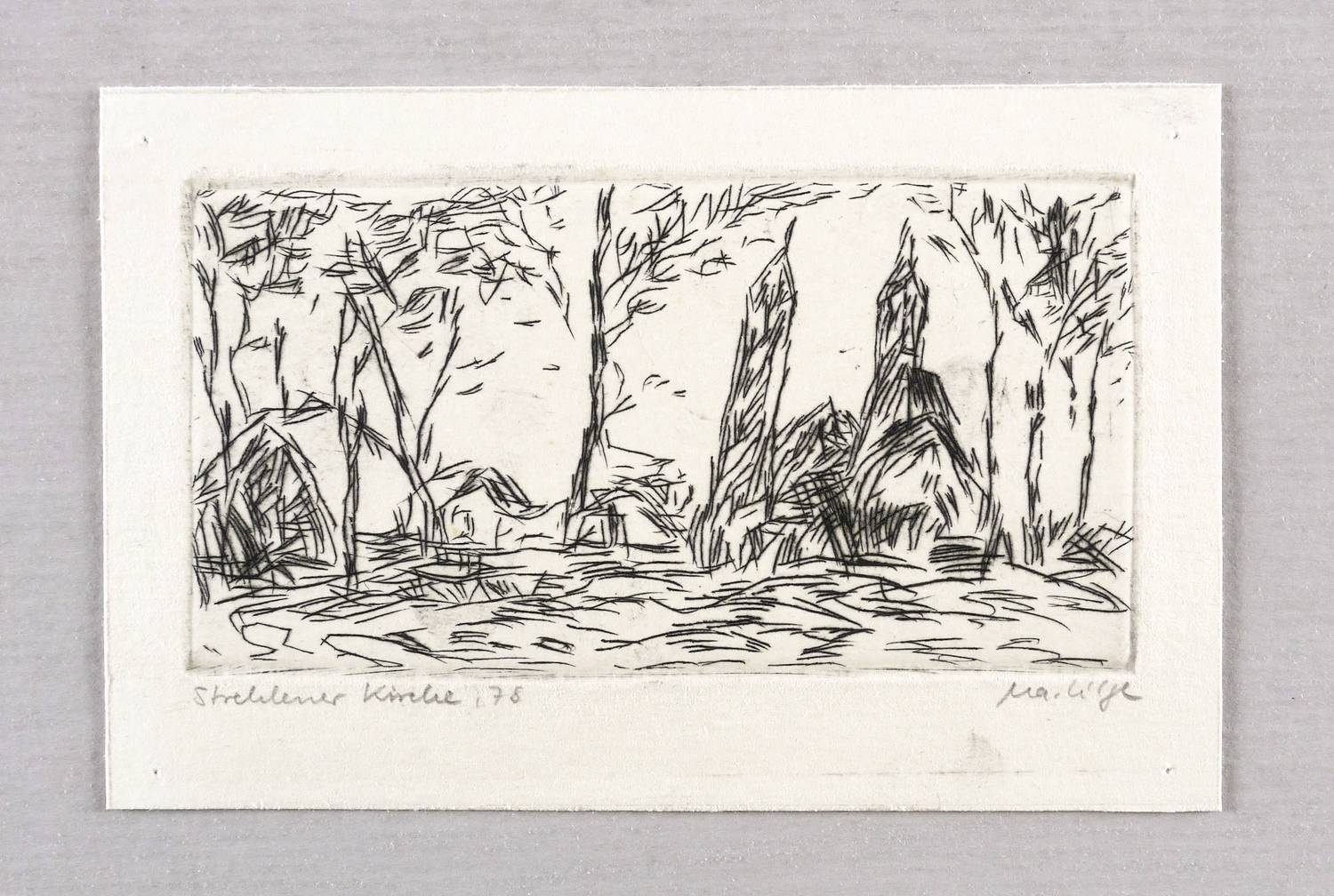 Rechts unten signiert: ″Ma. Lilge″. Links Titel und Jahr: ″Strehlener Kirche 78″. – Gutes Exemplar.