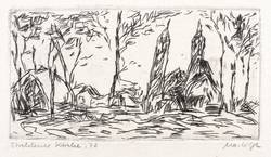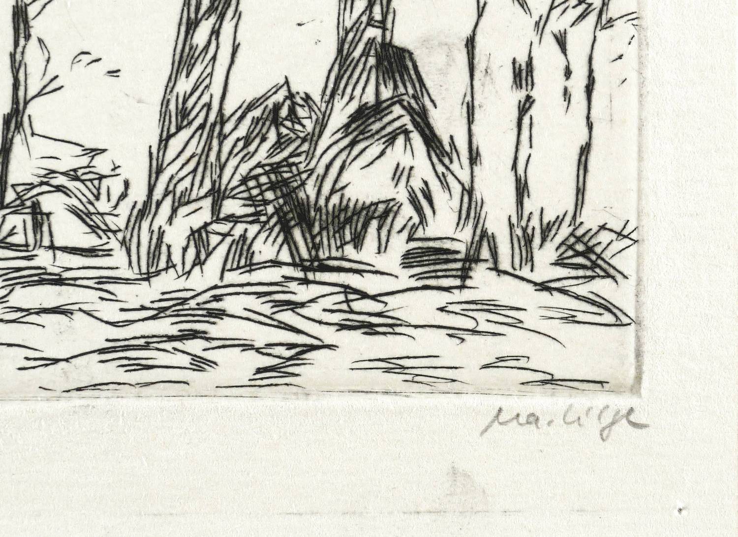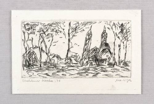 1978. Radierung / Strichätzung, in Schwarz, auf hellchamois Velinkarton. – Originale Künstlergrafik, von Marlis Lilge. – 5,3 x 9,8 cm (Darstellung / Platte), 7,5 x 11,5 cm (Blatt).
