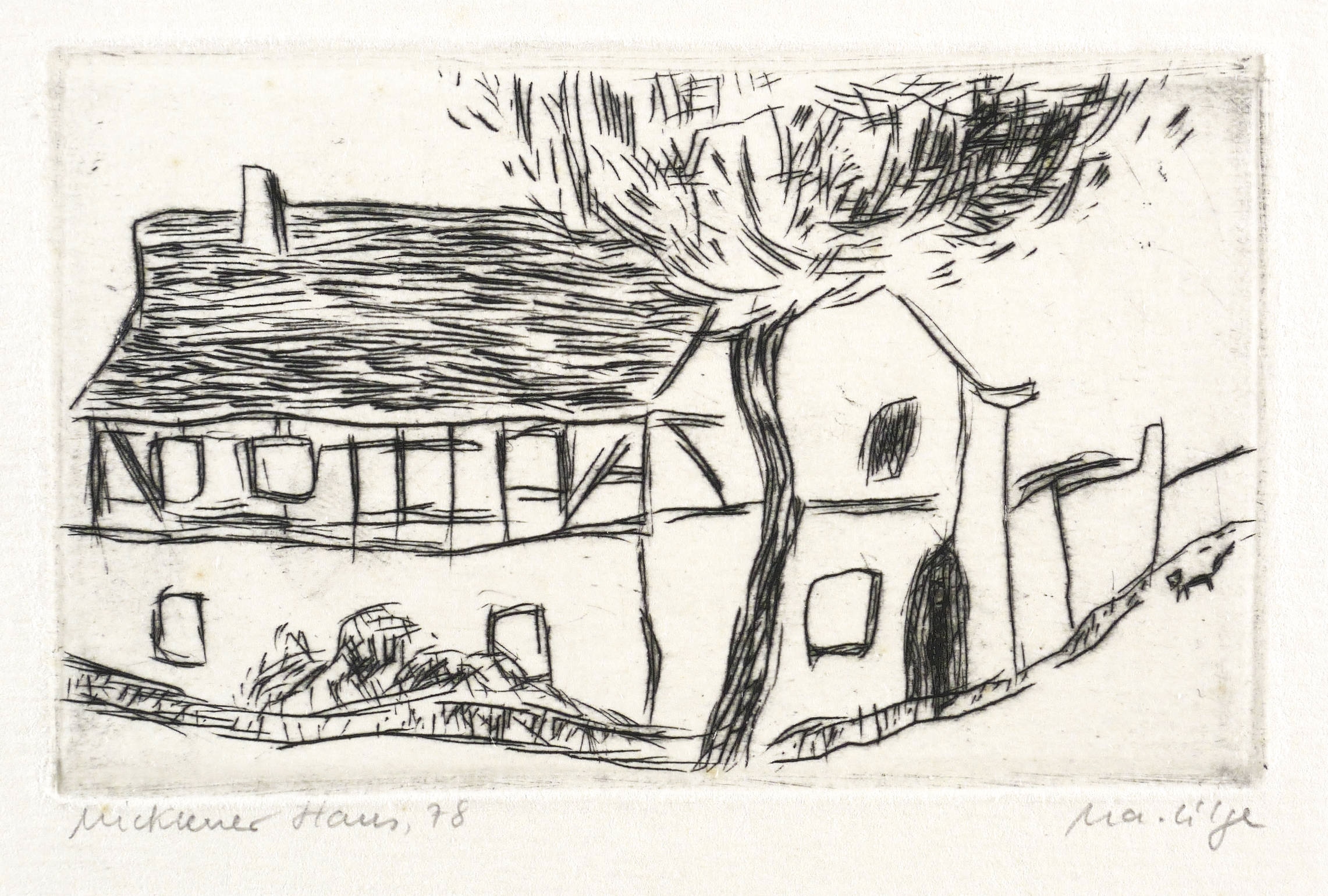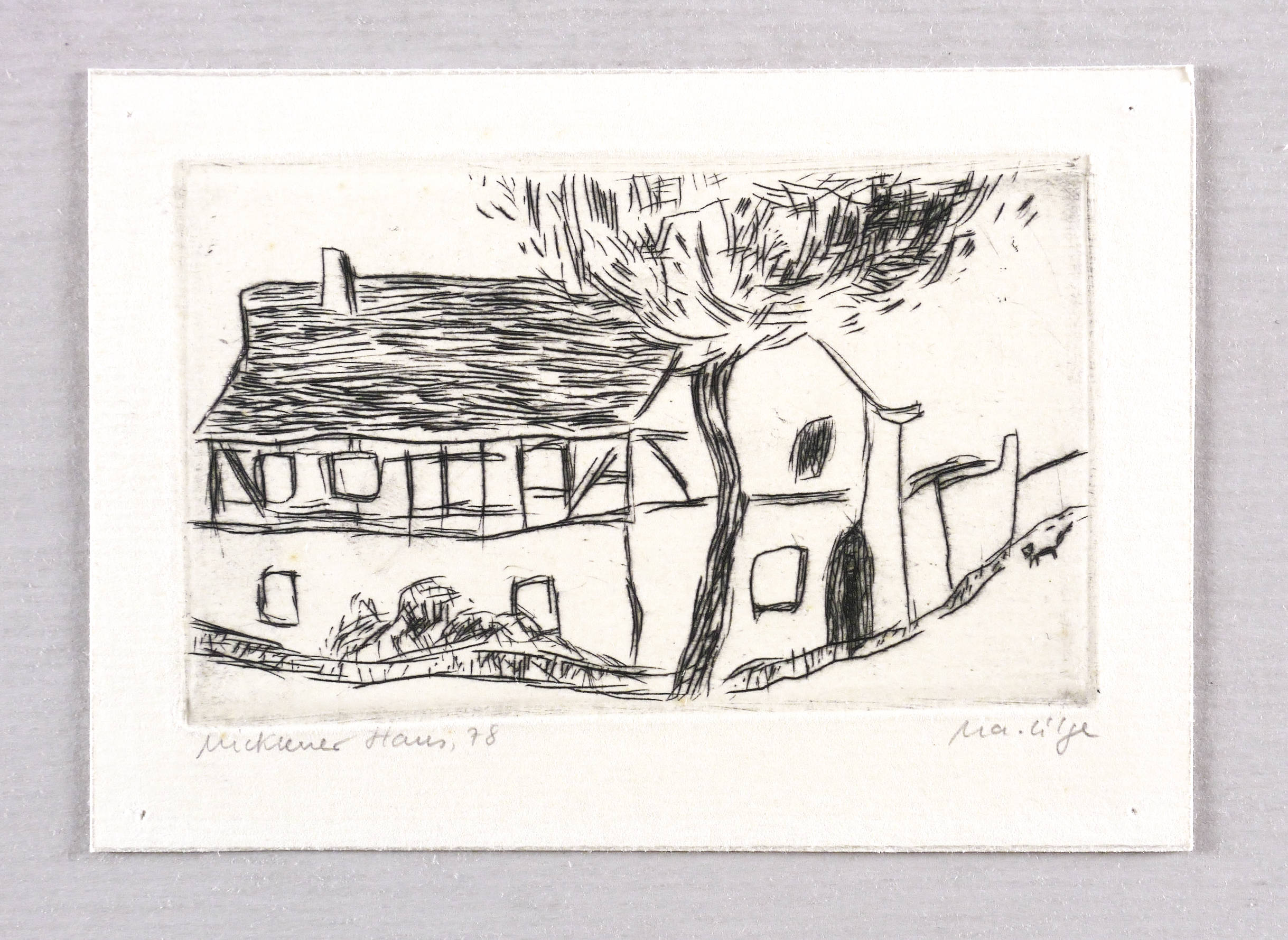 Rechts unten signiert: ″Ma. Lilge″. Links Titel und Jahr: ″Micktener Haus 78″. – Gutes Exemplar.