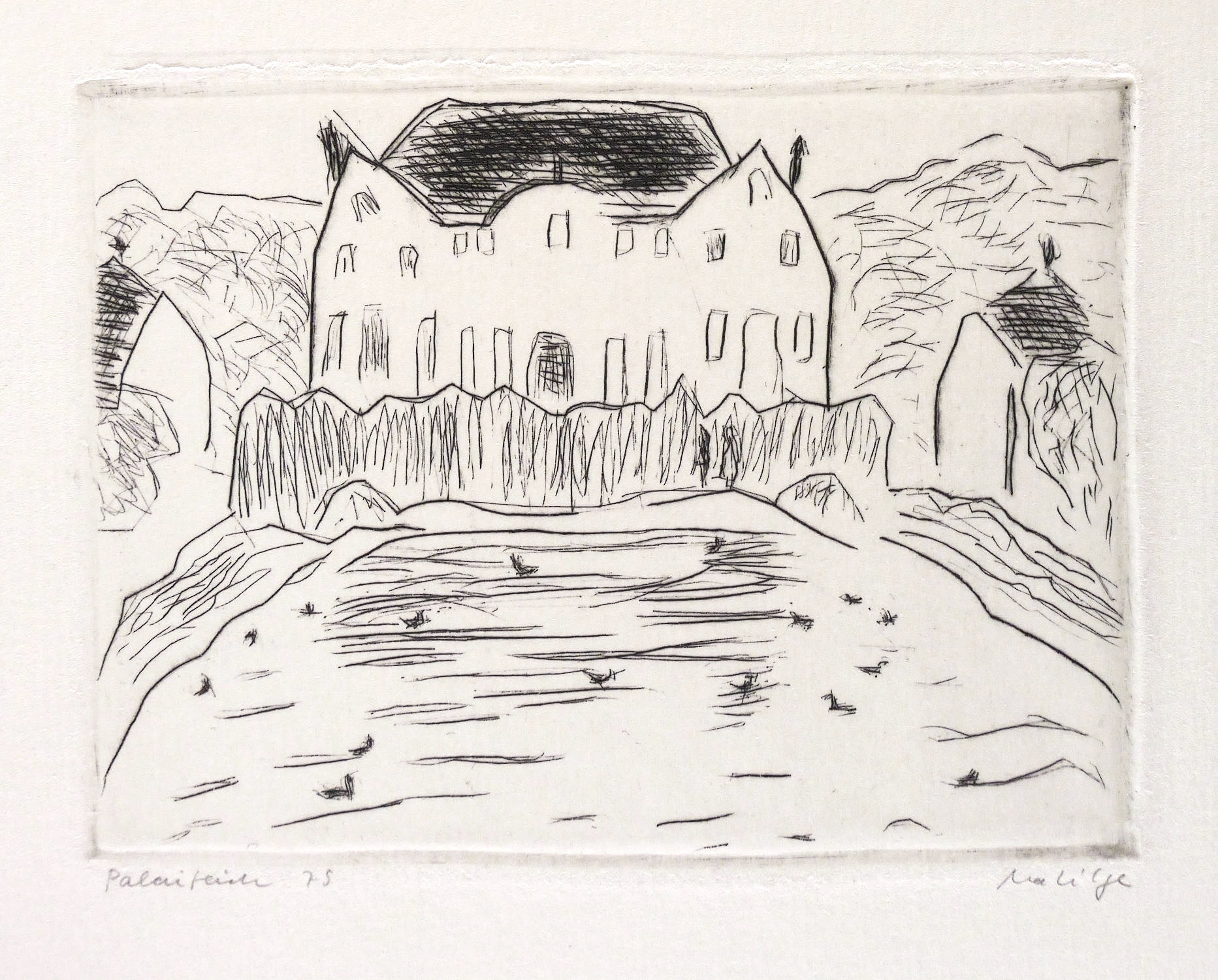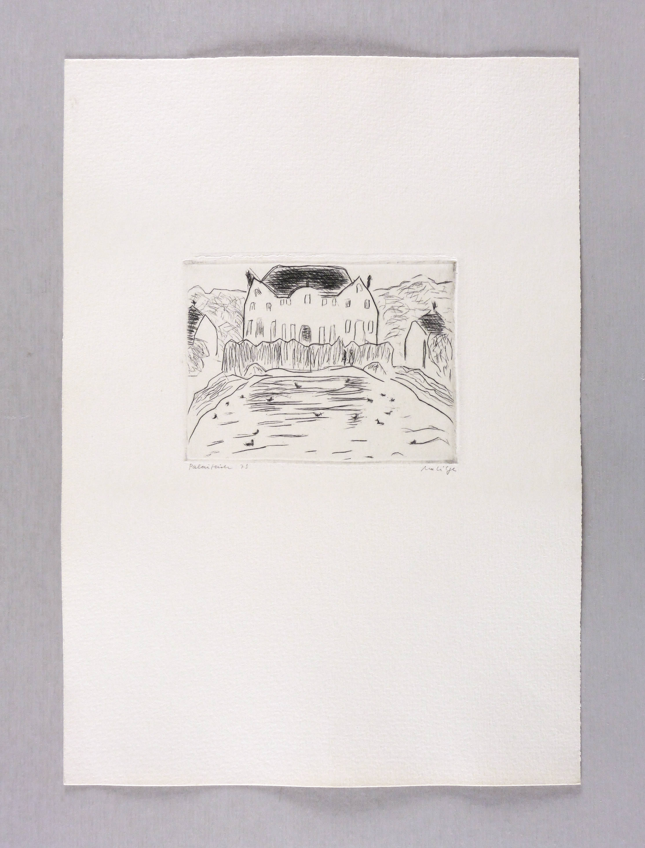 Rechts unten signiert: ″Ma. Lilge″. Links Titel und Jahr: ″Palaisteich 79″. – Sehr guter Zustand.
