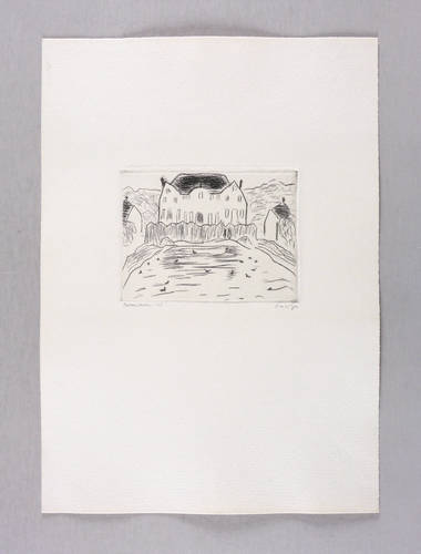 1979. Radierung / Strichätzung, in Schwarz, auf hellchamois Velinkarton. – Originale Künstlergrafik, von Marlis Lilge. – 9,3 x 12,2 cm (Darstellung / Platte), 33 x 23 cm (Blatt).