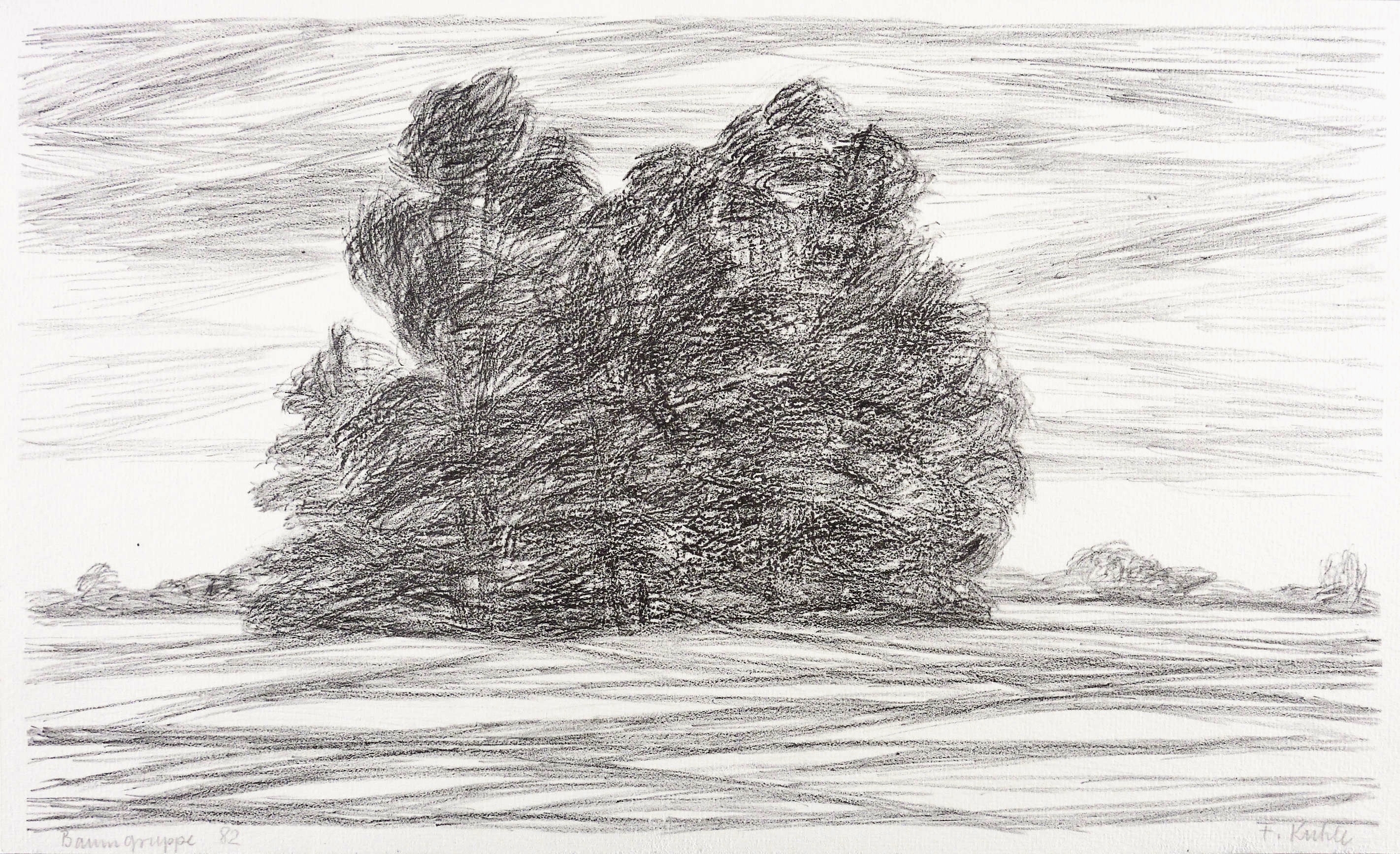 Rechts unten in Bleistift signiert: ″F. Kuhle″. Links Titel und Jahr: ″Baumgruppe 82″. – Sehr gut erhalten.