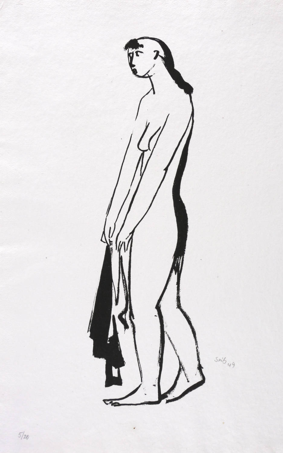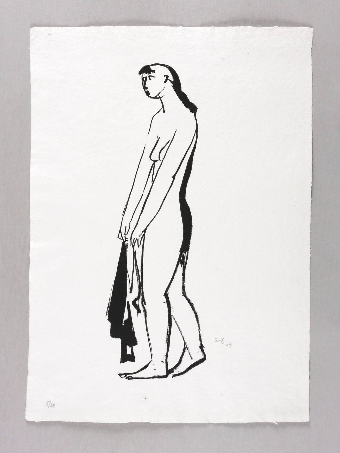 1949. Lithografie / Pinsellithografie, in Schwarz, auf hellchamois Ingres. – Originale Künstlergrafik, von Gustav Seitz. – Auflage Exemplar Nr. 5/20. – 33,2 x 10,6 cm (Darstellung / Druckbild), 42 x 30 cm (Blatt).