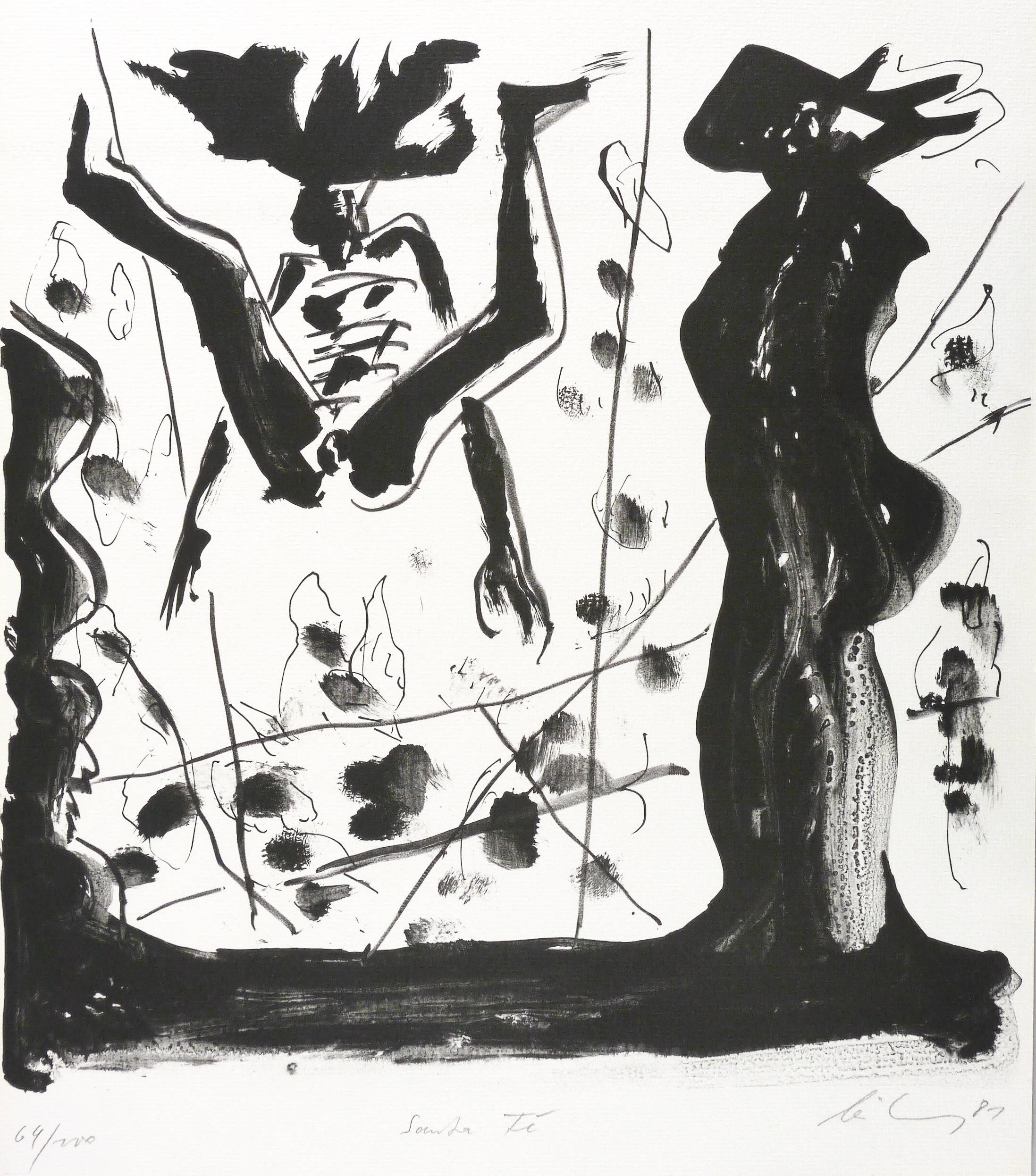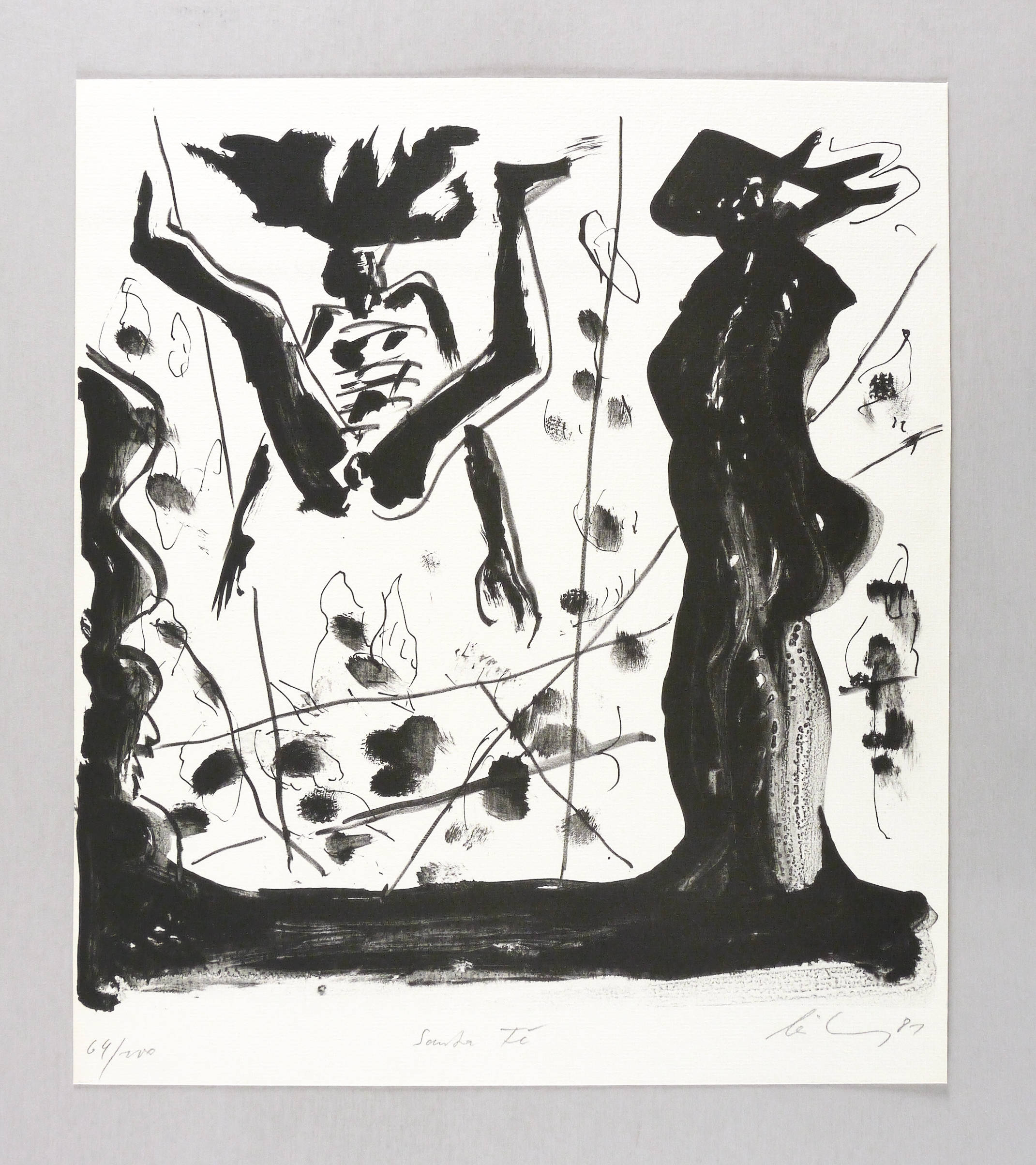 1981. Zinkografie / Kreide- & Pinselzinkografie, in Schwarz, auf hartem hellchamois Weißenborn. – Originale Künstlergrafik, von Helge Leiberg. – Auflage Exemplar Nr. 64/100. – 40 x 35 cm (Blatt), 34,5 x 33,9 cm (Darstellung / Druckbild).