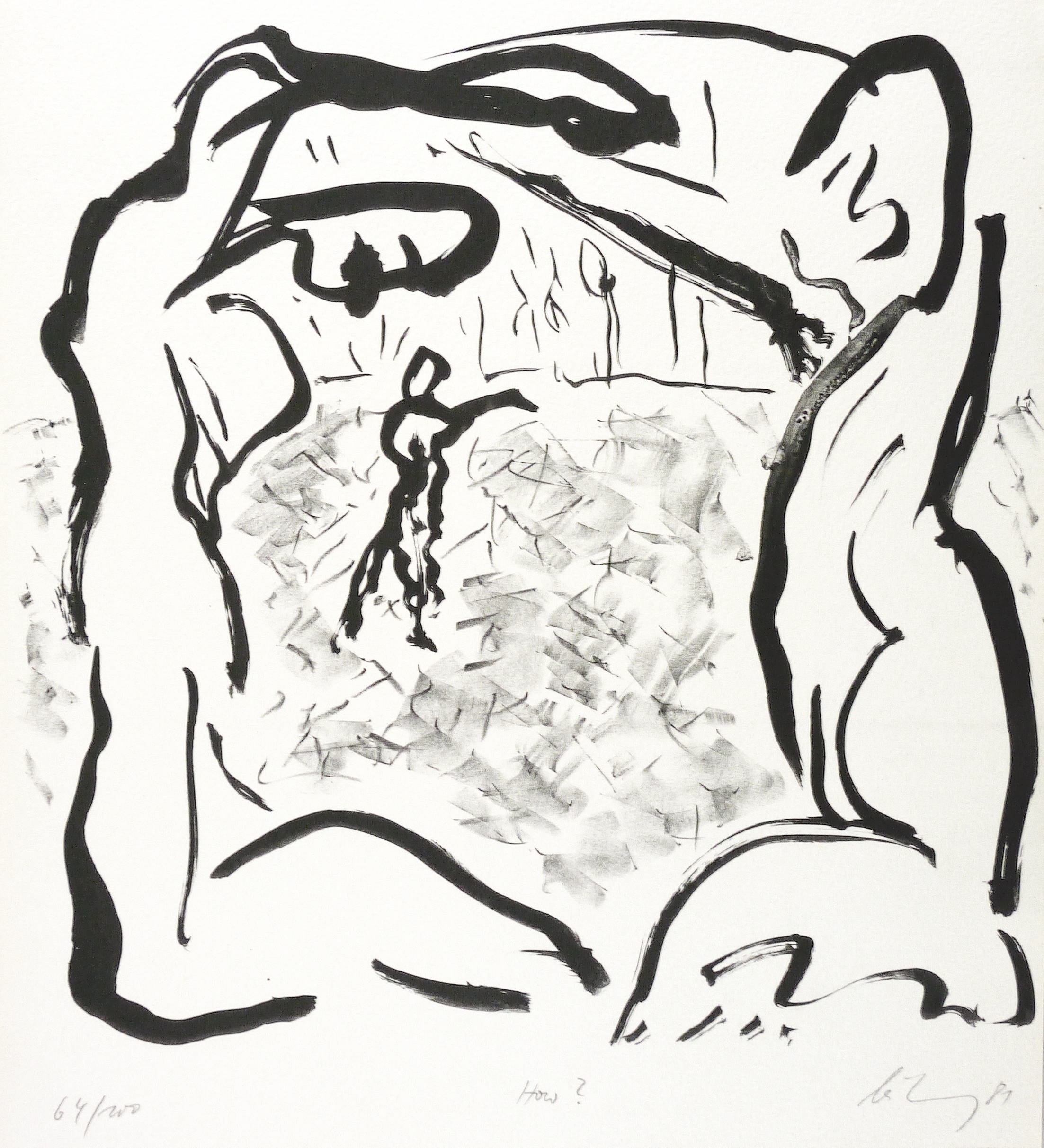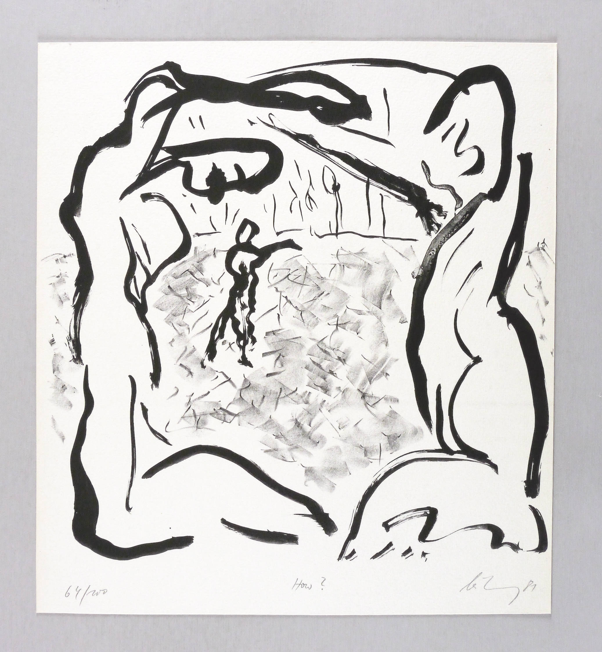 Rechts unten in Bleistift signiert und datiert: ″Leiberg 81″. Links Auflagenbezeichnung: ″64/100″. Mittig Titel: ″How?″ – Tadellos erhalten. Sehr guter Zustand.