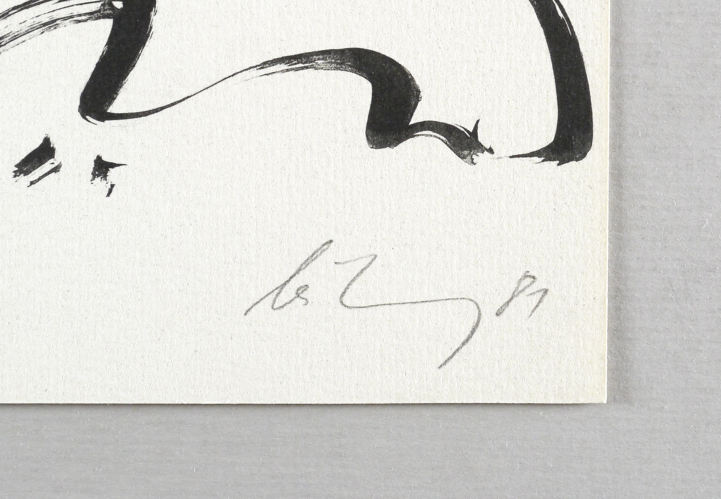 1981. Zinkografie / Kreide- & Pinselzinkografie, in Schwarz, auf hartem hellchamois Weißenborn. – Originale Künstlergrafik, von Helge Leiberg. – Auflage Exemplar Nr. 64/100. – 38 x 35 cm (Blatt), 33,4 x 34,0 cm (Darstellung / Druckbild).