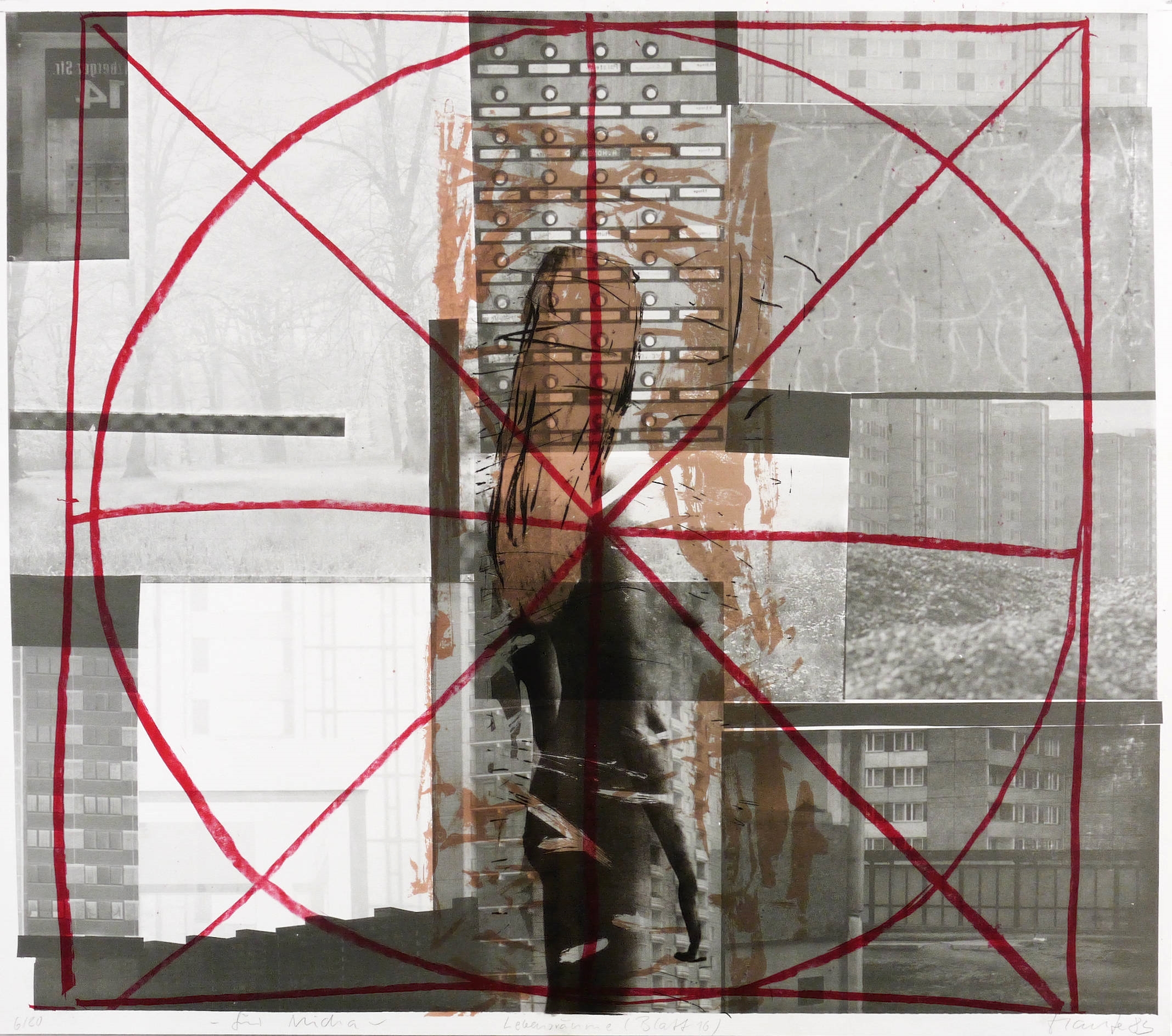 1983. Farbsiebdruck / Farbserigrafie, in Rot, Graubraun & Schwarz, auf weißem Velinkarton. – Originale Künstlergrafik, von Jürgen Haufe. – Auflage Exemplar Nr. 6/20. – 57 x 65 cm (Blatt), 55,2 x 63,3 cm (Darstellung / Druckbild).
