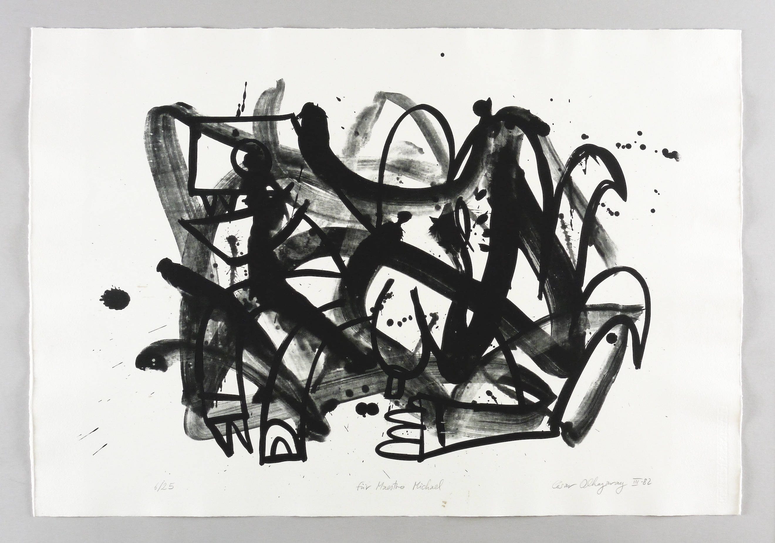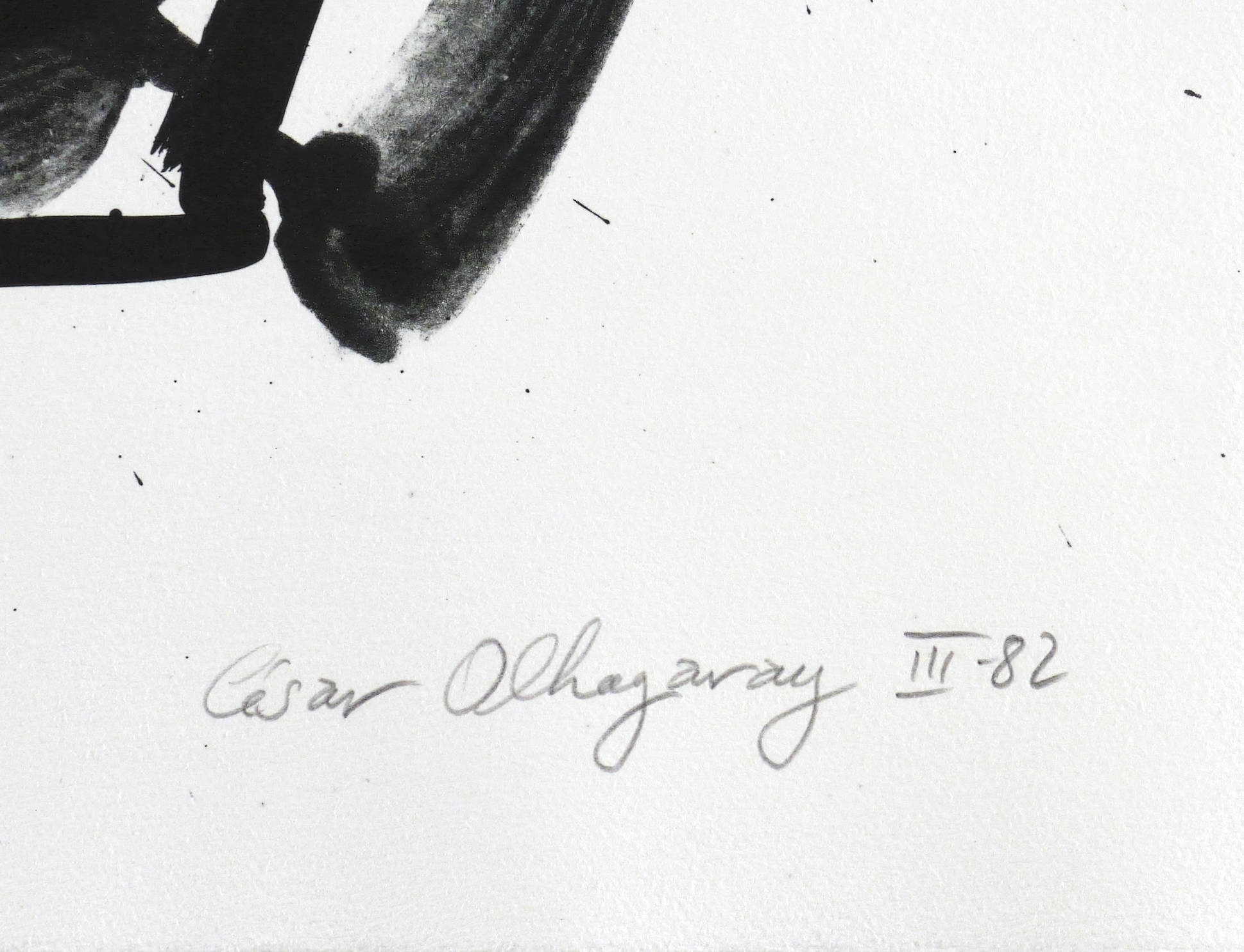 Rechts unten in Bleistift signiert und datiert: ″César Olhagaray III-82″. Links Auflagenbezeichnung: ″6/25″. Dazu Widmung an den Steindrucker Michael Wackwitz. Wasserzeichen der Hahnemühle. – Im Bereich der Widmung im unteren Rand etwas fleckig. Mäßig guter Zustand.