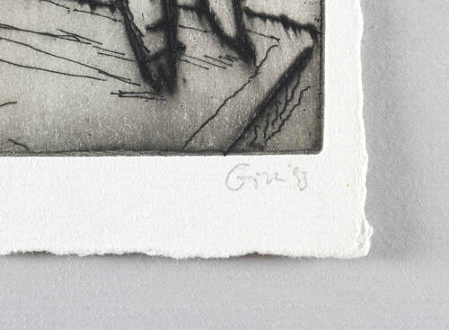 1993. Radierung / Kaltnadel, in Schwarz, auf schwerem chamois Bütten. – Originale Künstlergrafik, von Sighard Gille. – 14,7 x 12,1 cm (Darstellung / Platte), 17,7 x 13,2 cm (Blatt).