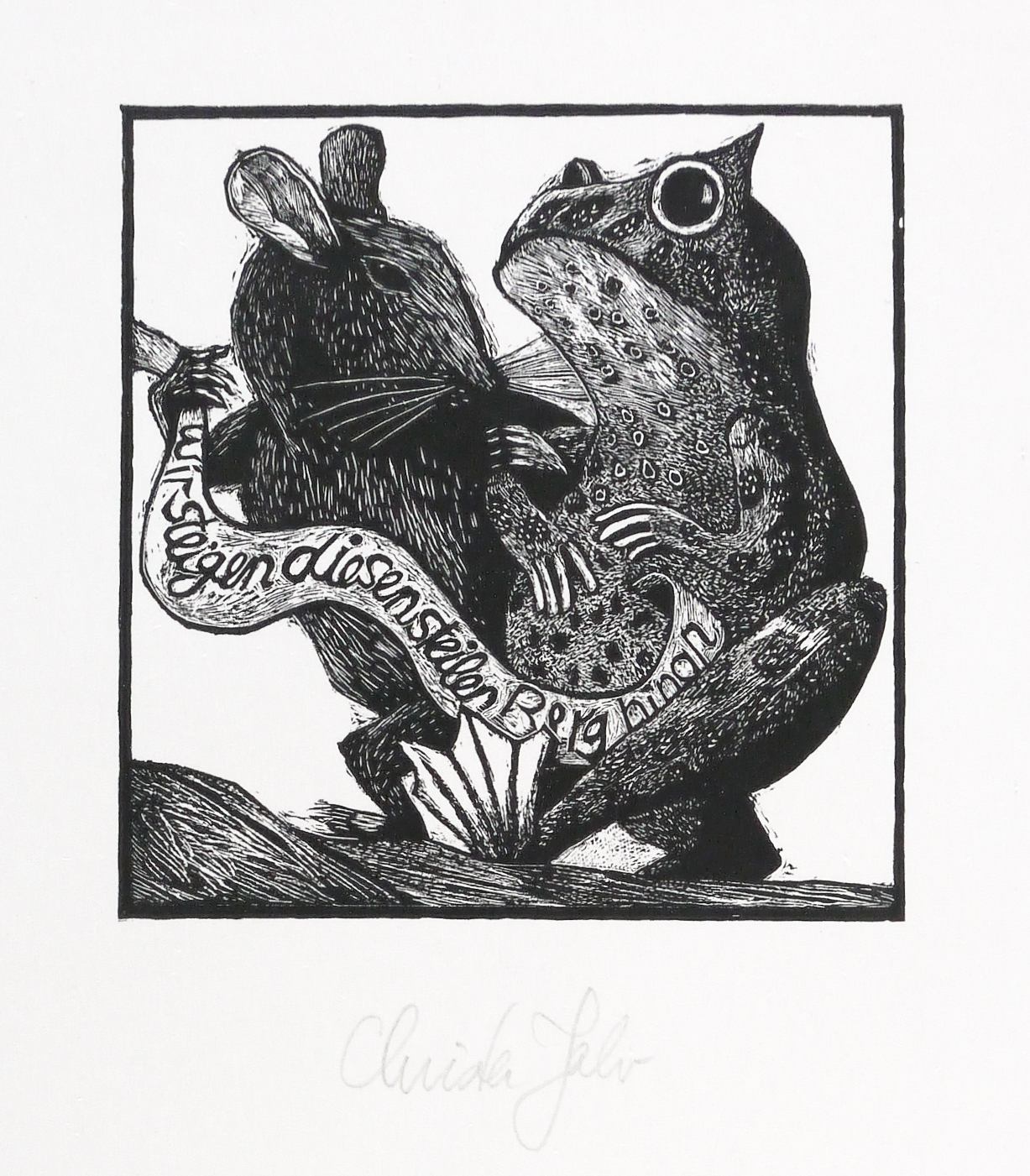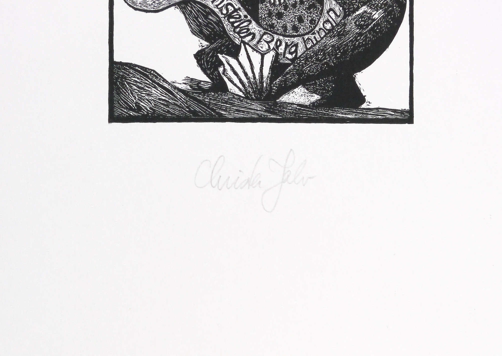Christa Jahr (*1941 Quedlinburg - lebt und arbeitet in Leipzig). Deutsche Grafikerin. 1962-68 Staatsexamen und Tätigkeit als Bibliothekarin. 1968-74 Studium an der Hochschule für Grafik und Buchkunst (HGB) Leipzig. 1987-91 Lehrtätigkeit im Vorstudium der HGB.