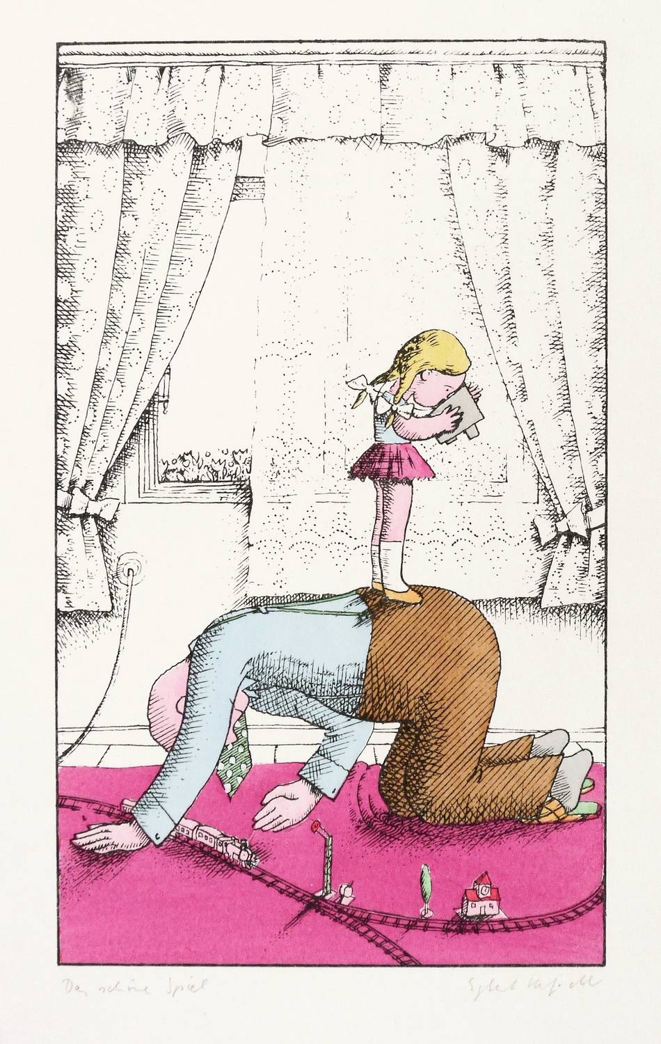 Rechts unten in Bleistift signiert: ″Egbert Herfurth″. Links Titel: ″Das schöne Spiel″. Verso Stempel der Plauener Grafikgemeinschaft. – Sehr guter Zustand.