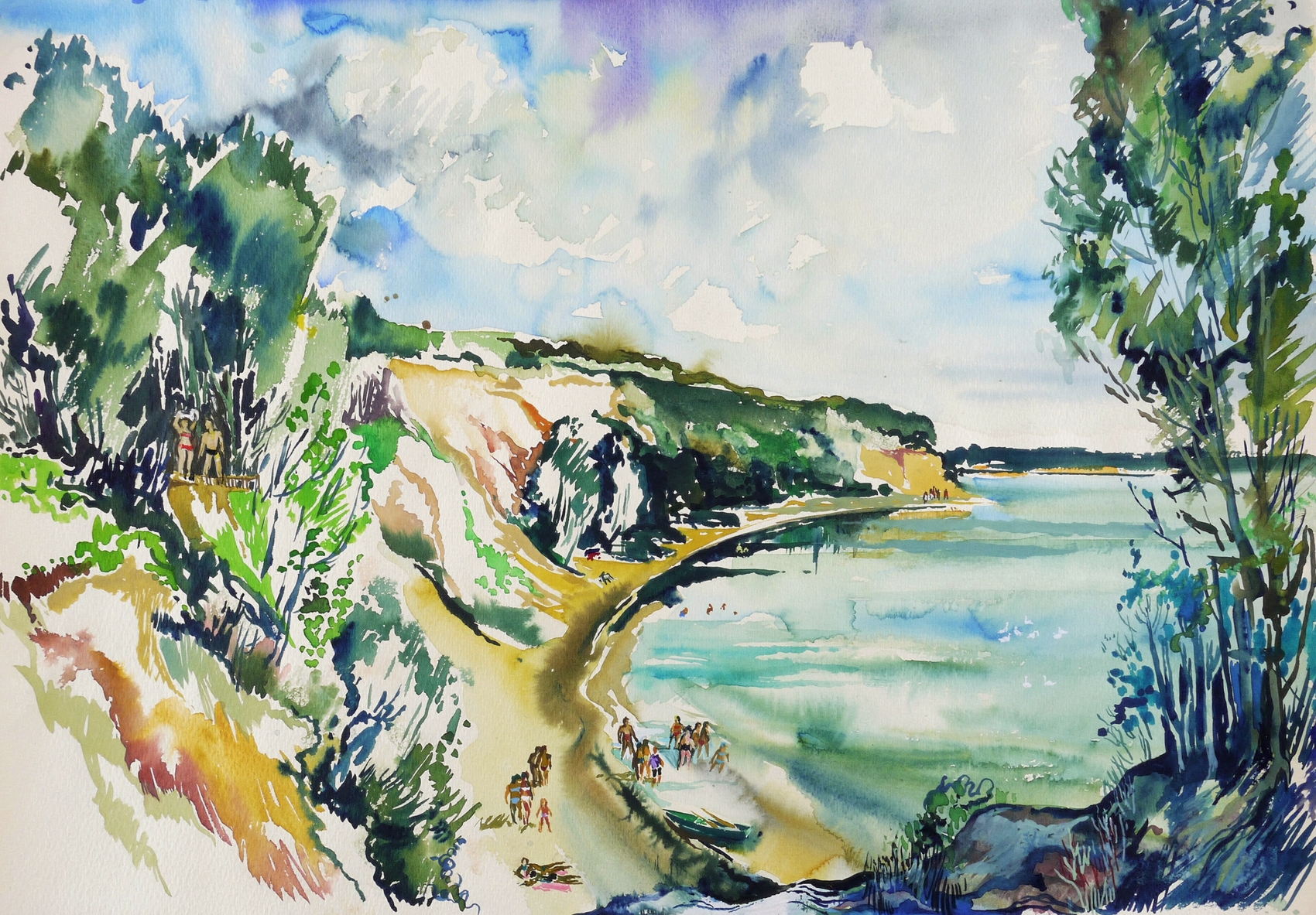 Nicht handsigniert. Verso in Bleistift ausführlich bezeichnet: ″o.t. / Knappensee / Hoyerswerda / Aquarell / 1967, 41,7 x 59,5 cm″. Dazu Nachlass-Stempel. – Sehr guter Zustand.