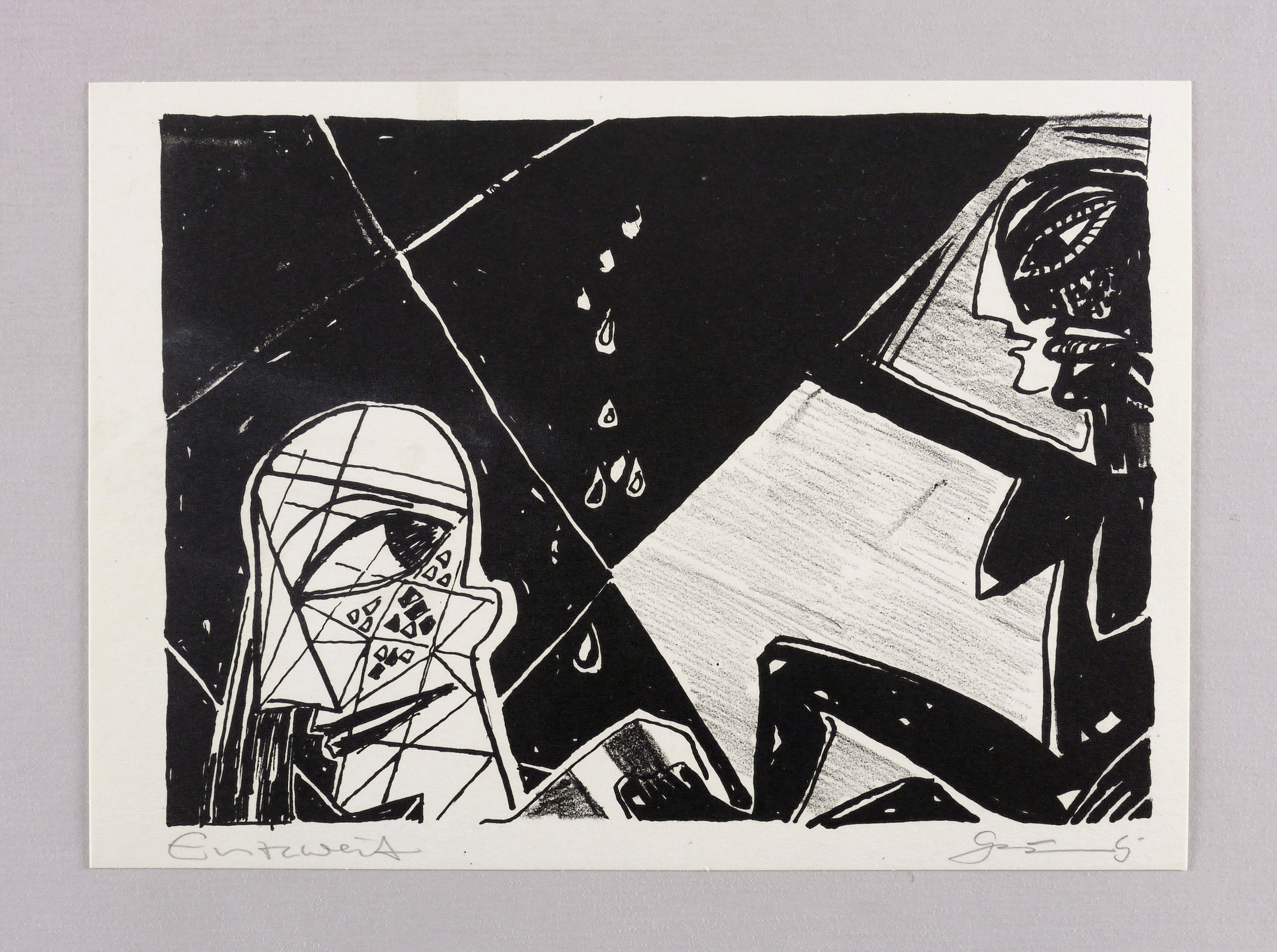 Unten rechts in Bleistift signiert: ″GBräunling″. Links Titel: ″Entzweit″. – Rückseitig leichte Montagespuren. Sonst tadellos. Sehr guter Zustand.