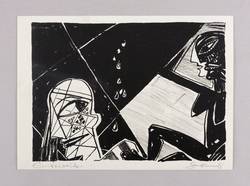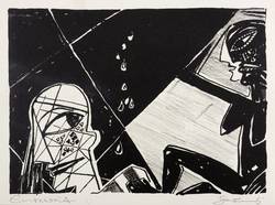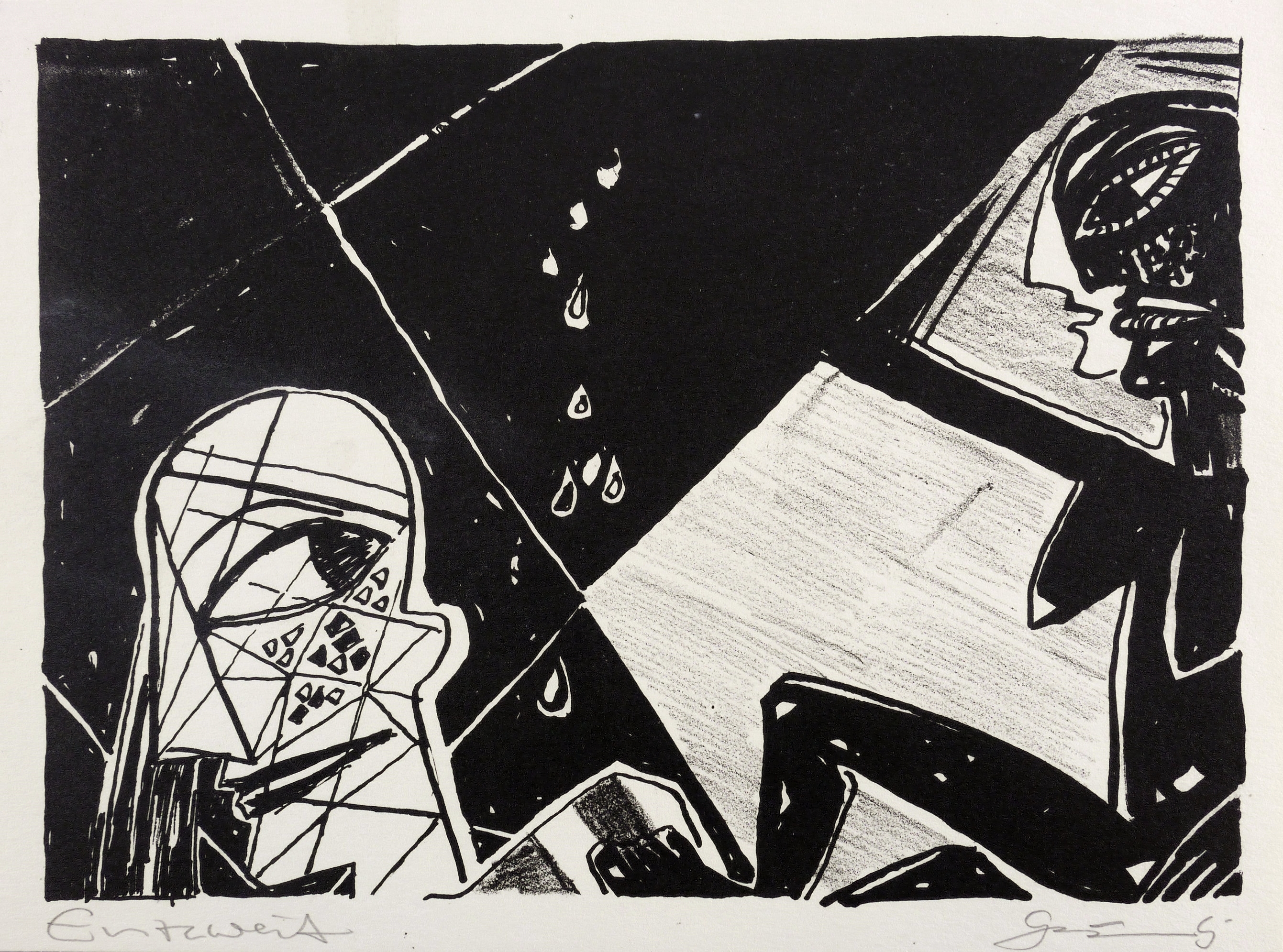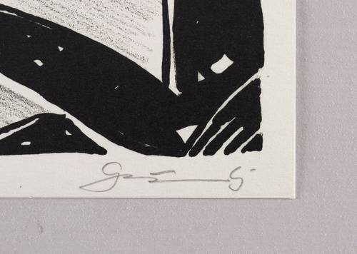 1985. Lithografie / Kreide- & Pinsellithografie, in Schwarz, auf hartem hellchamois Velin. – Originale Künstlergrafik, von Gottfried Bräunling. – 15,7 x 21,8 cm (Darstellung / Druckbild), 18 x 25 cm (Blatt).