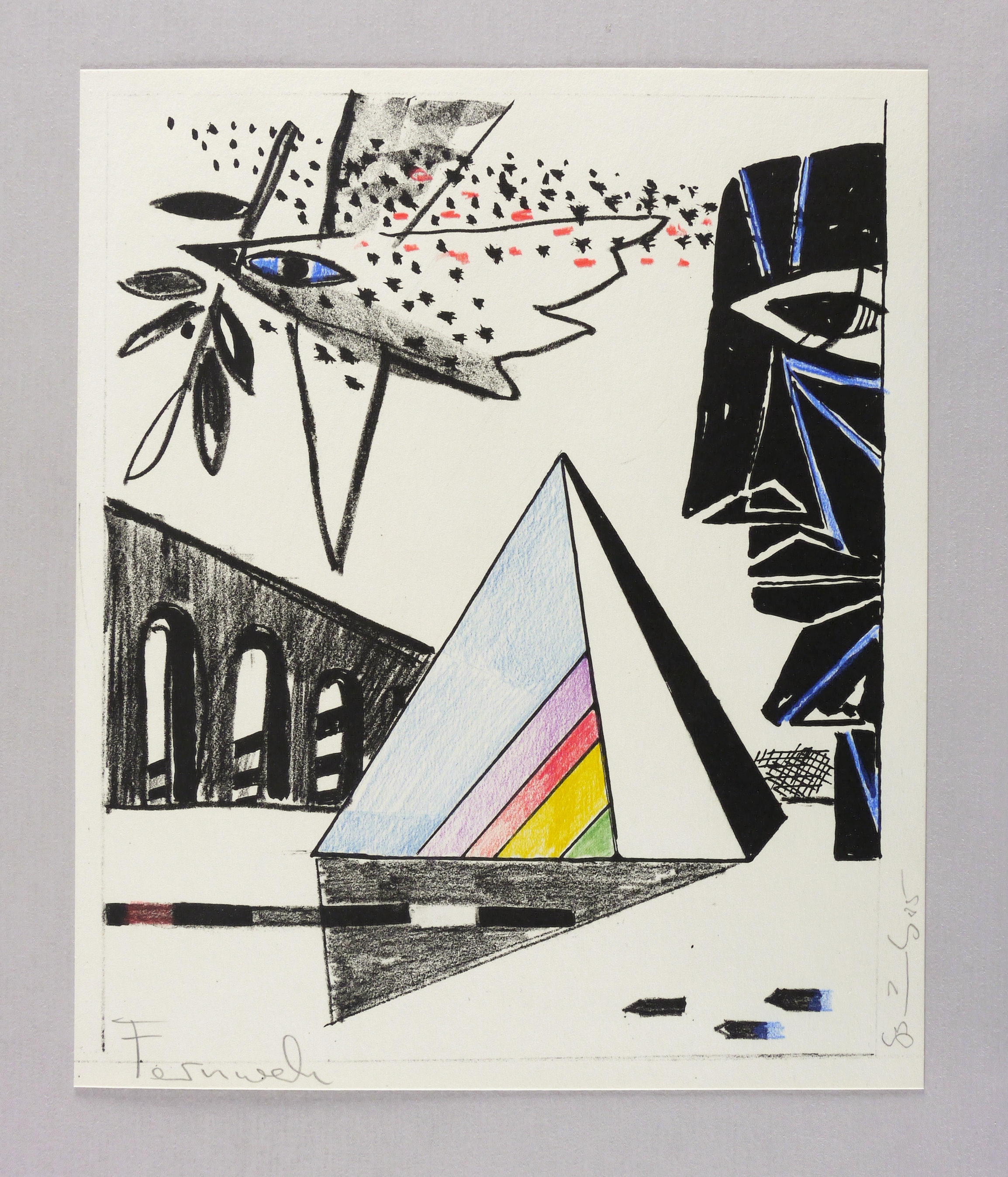 Unten rechts in Bleistift signiert und datiert: ″GBräunling 85″. Links Titel: ″Fernweh″. – Rückseitig leichte Montagespuren. Sonst tadellos. Sehr guter Zustand.